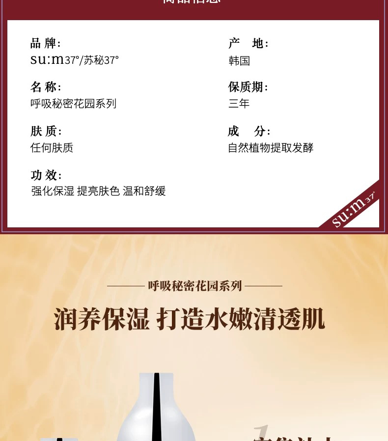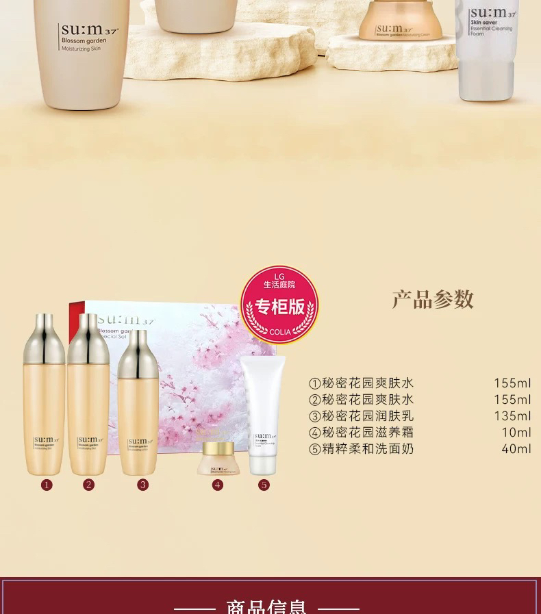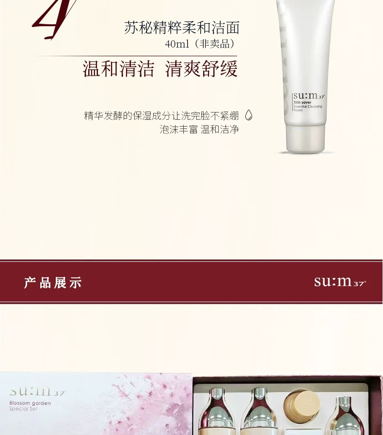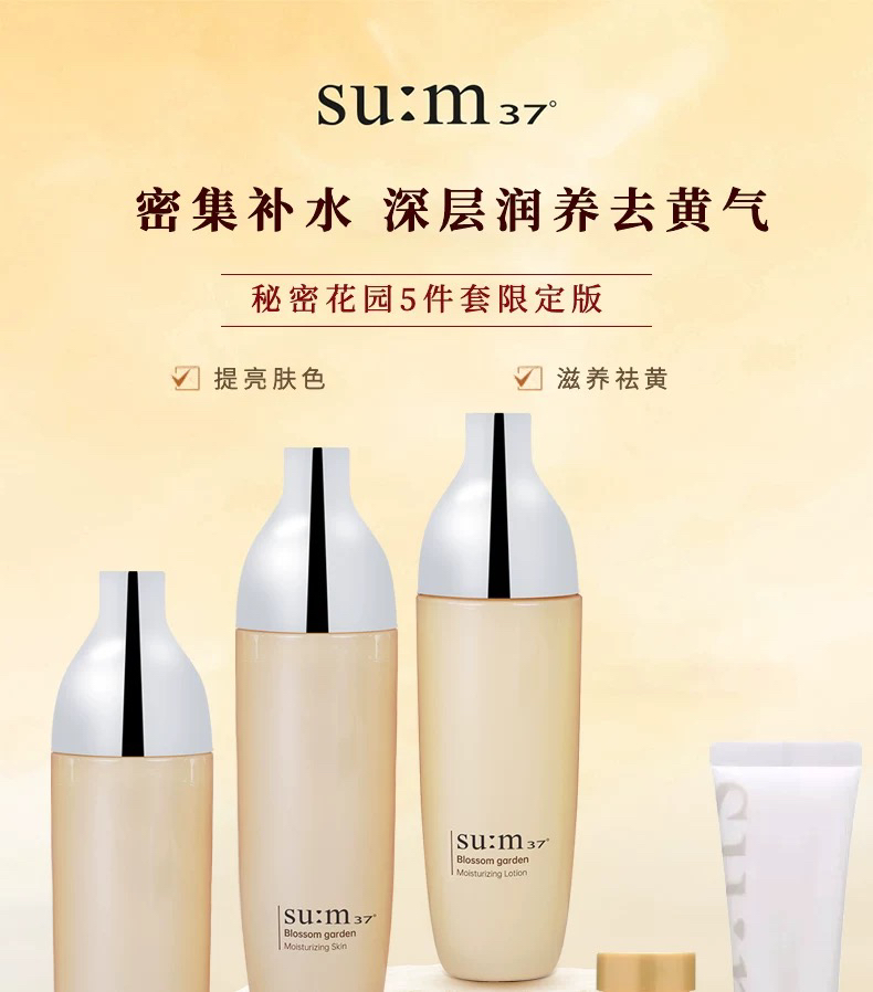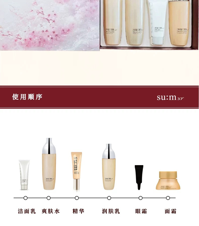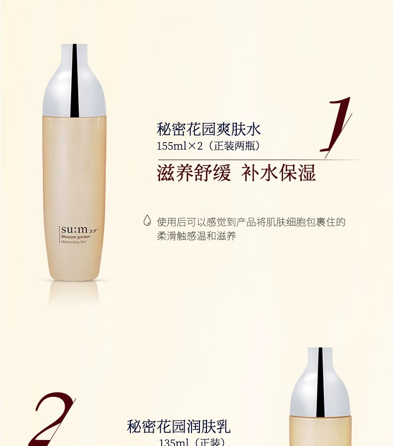 韩国sum37°呼吸花园限定套盒 补水保湿水乳三件套 化妆水155ml×2瓶+乳液135ml+洁面40ml+面霜10ml