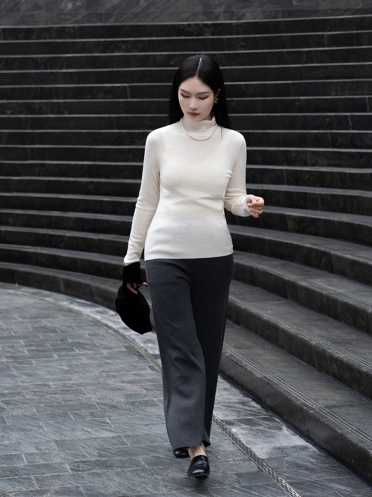 盛唐婧 | 重磅精纺羊毛圆领宽松打底-白色