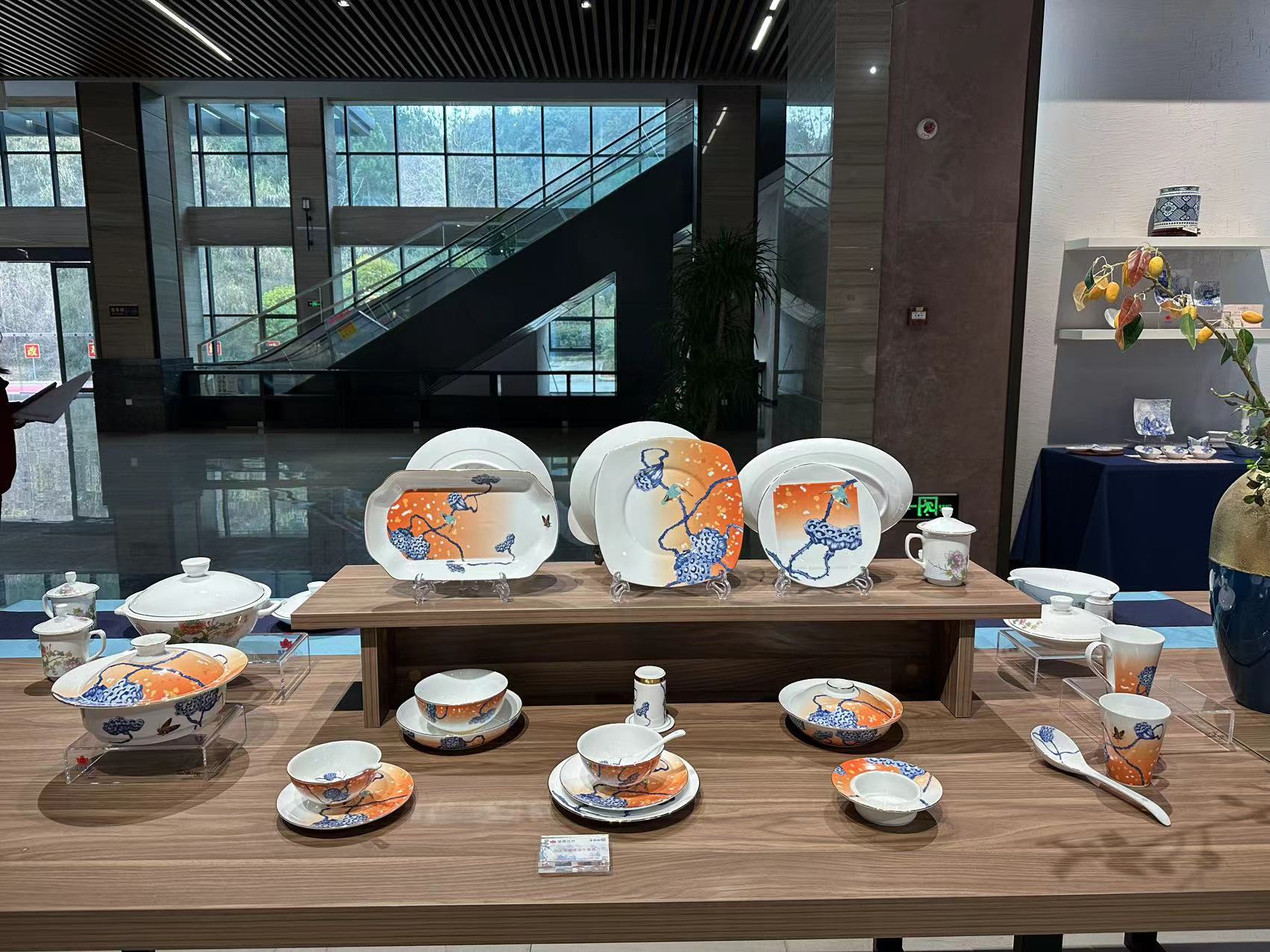 景德镇陶瓷 国瓷红叶 42头珐琅彩和谐盛世中餐具