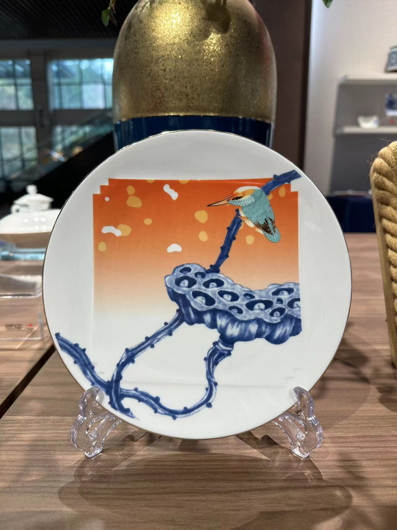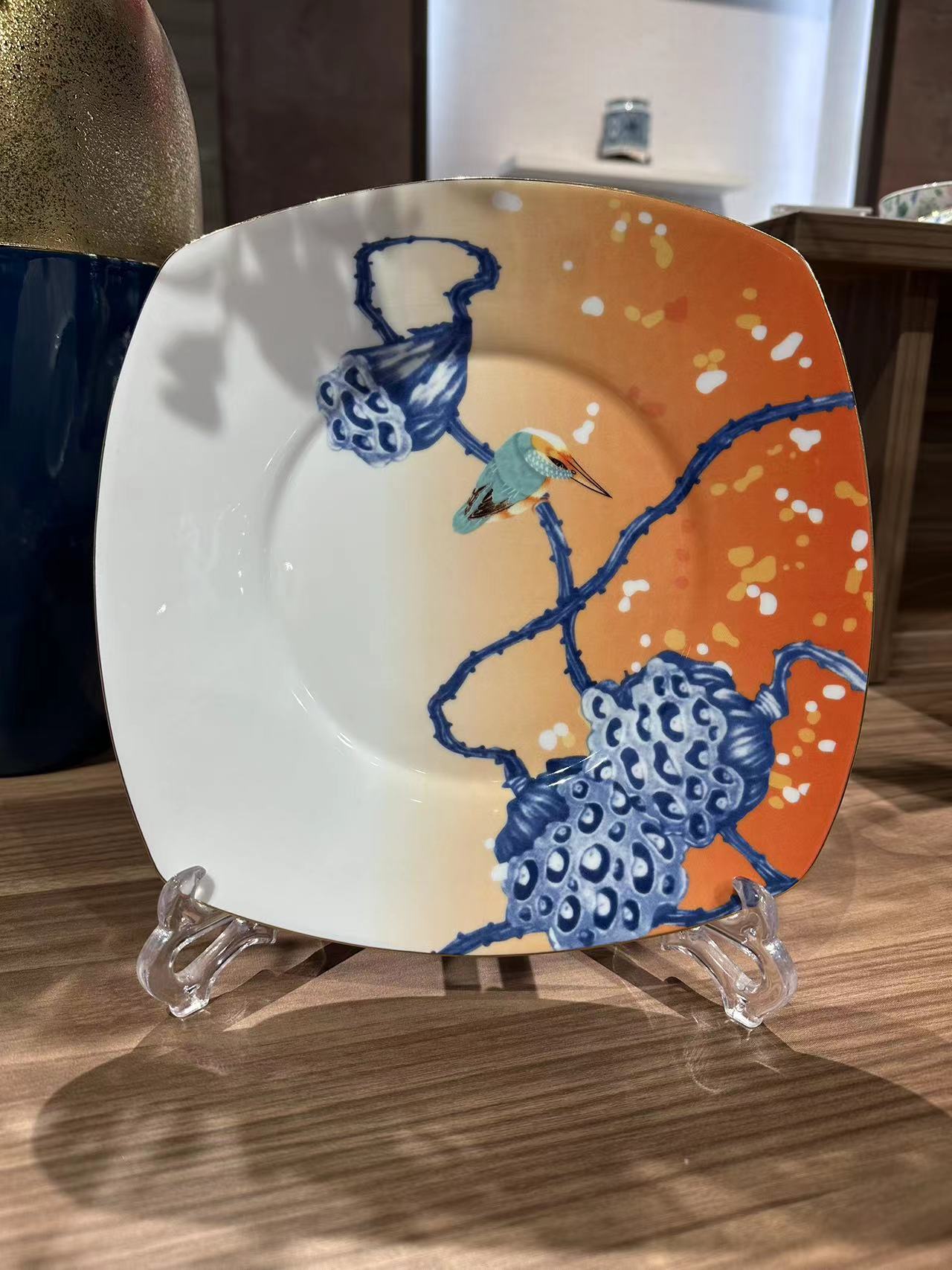 景德镇陶瓷 国瓷红叶 42头荷塘蝶恋中餐具