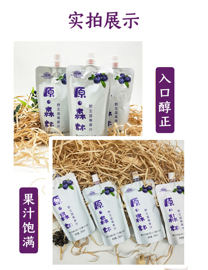 拼团价88元!原价109元,原森林浓度85%野生蓝莓果汁200ml*10袋