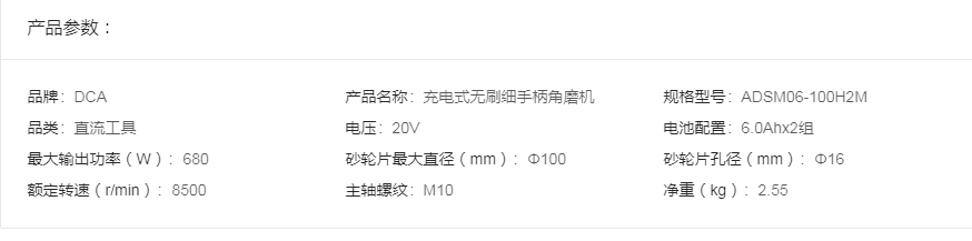DCA东成 充电式无刷角向磨光机 ADSM06-100H2M