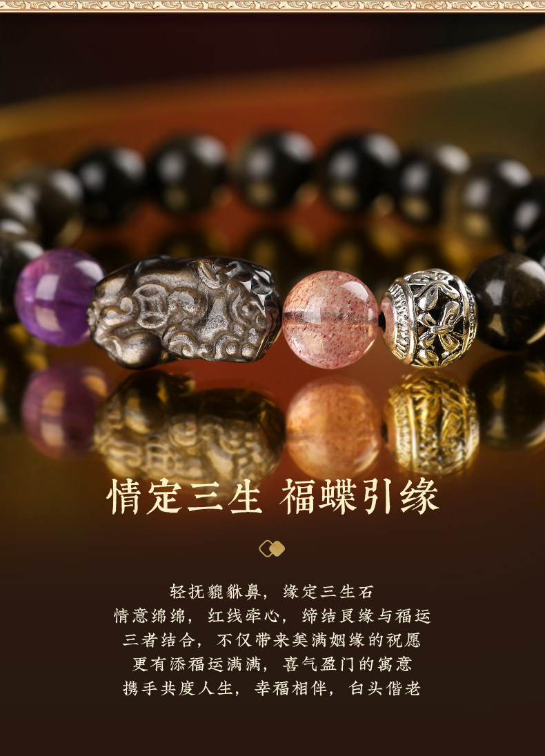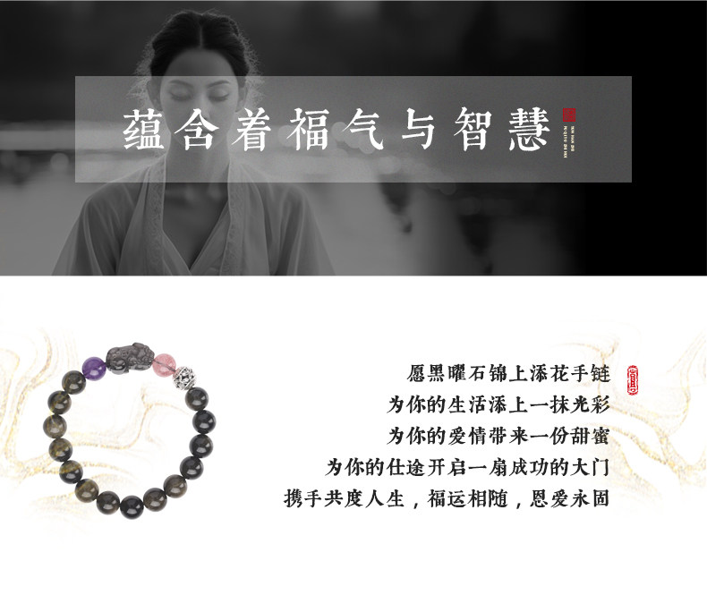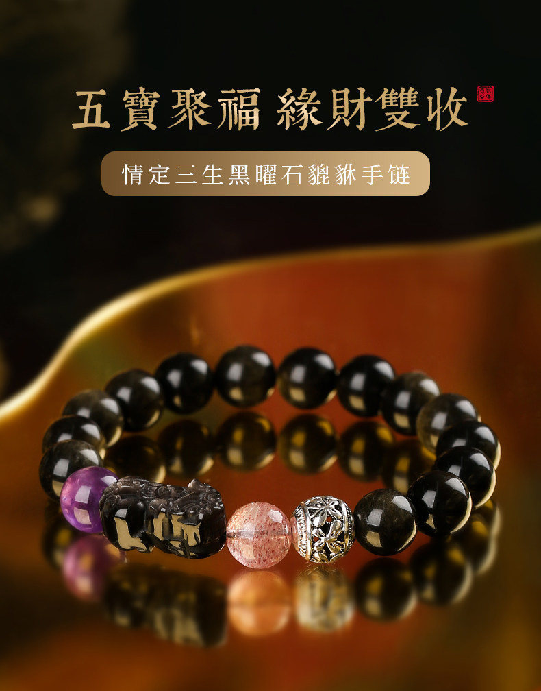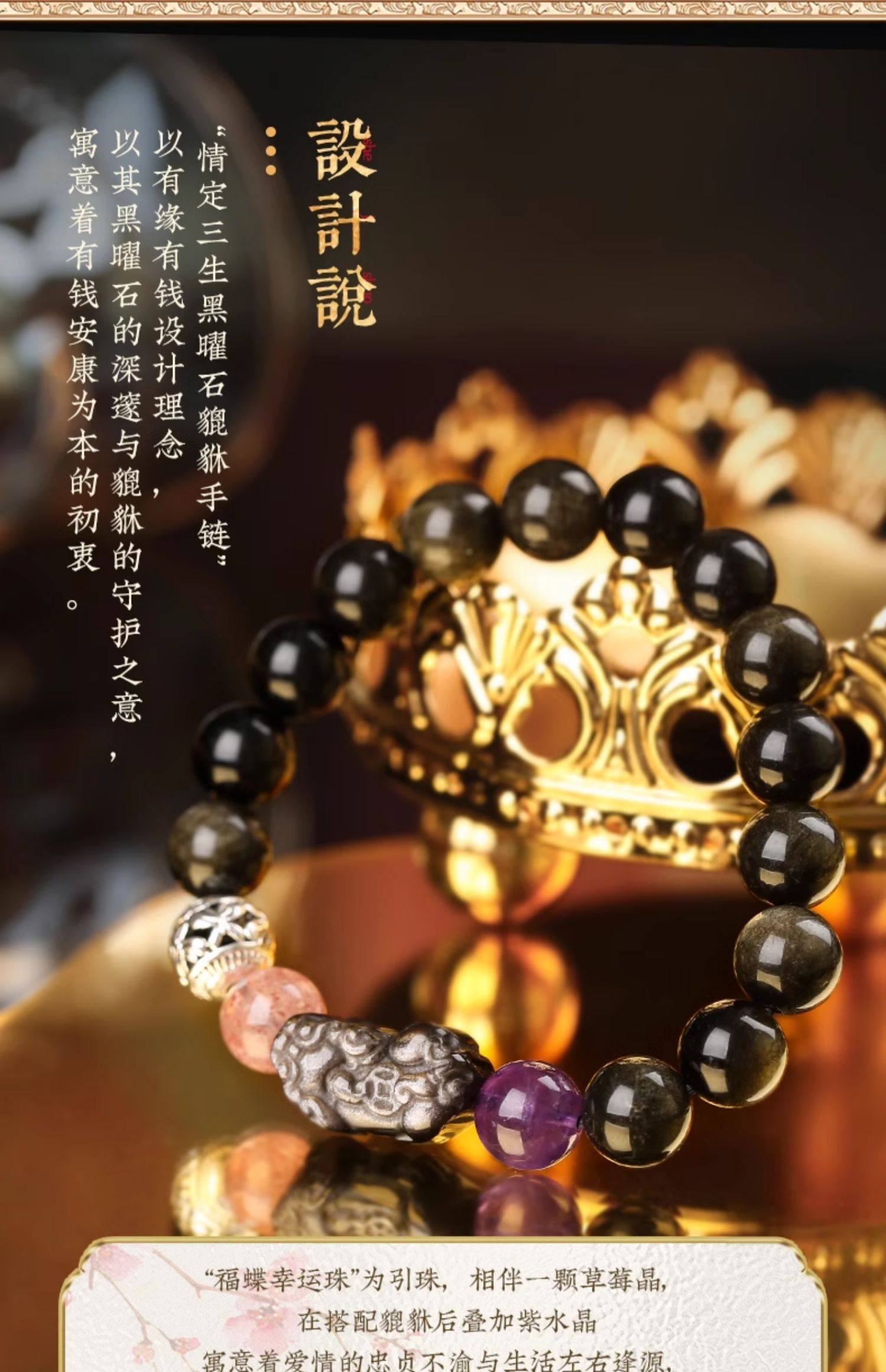 【祈愿吉品】【 財囍双收】貔貅黑曜石紫水晶手链 情定三生手串男