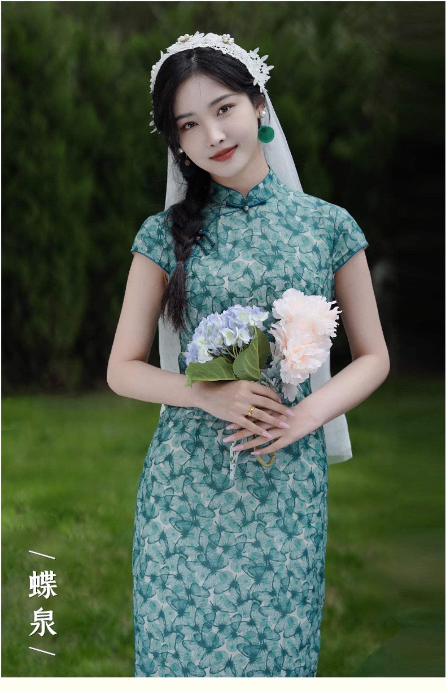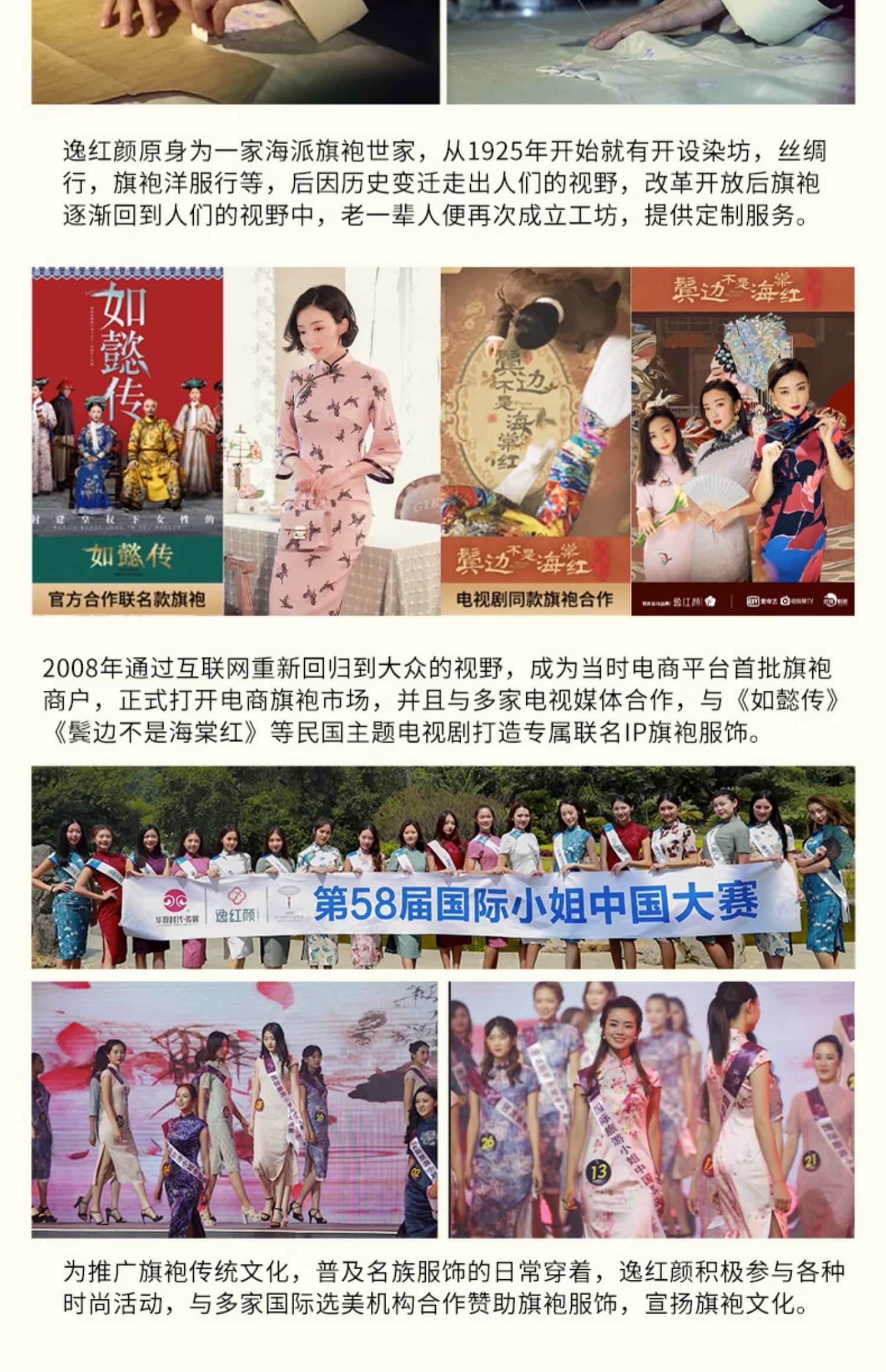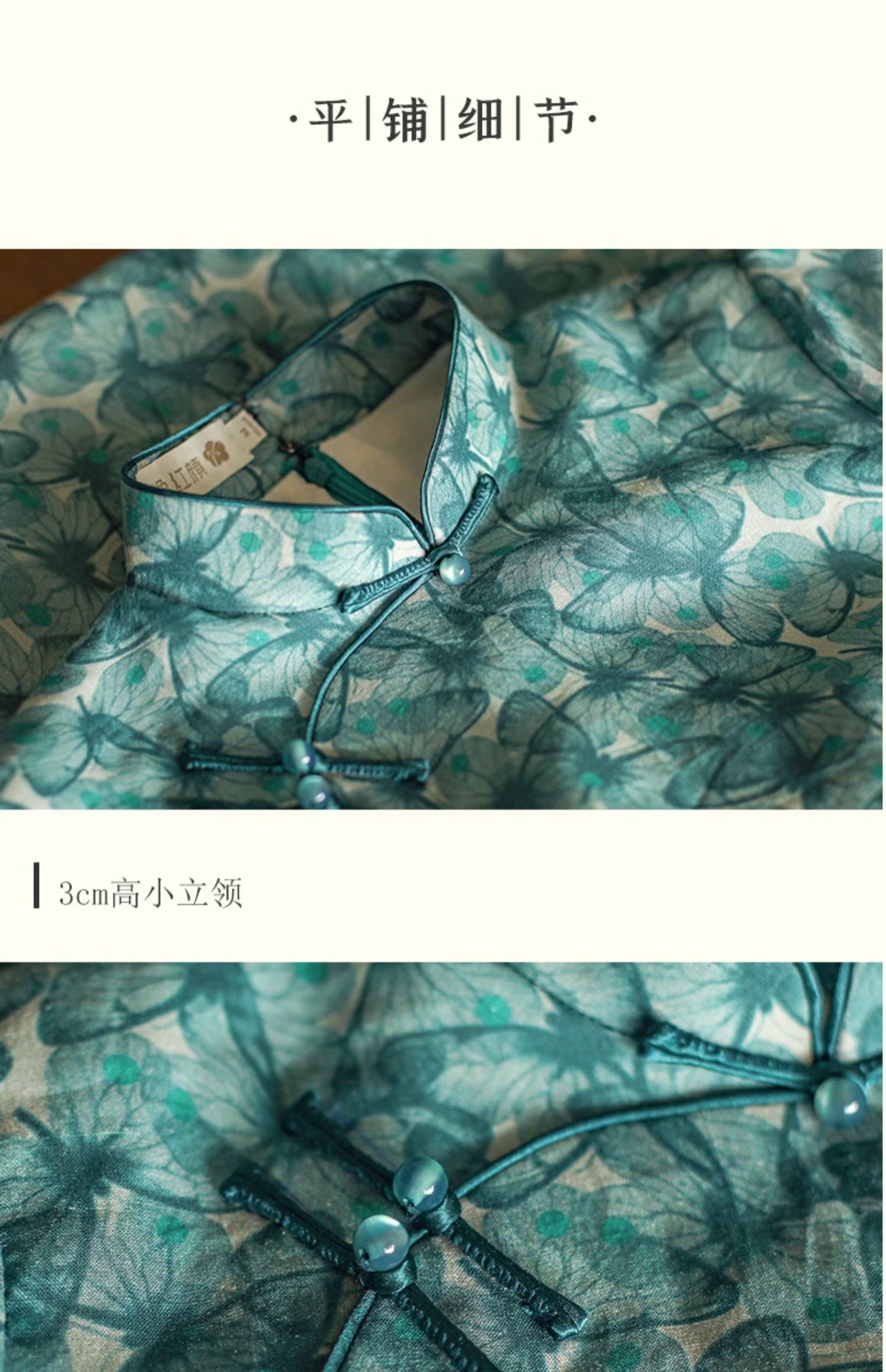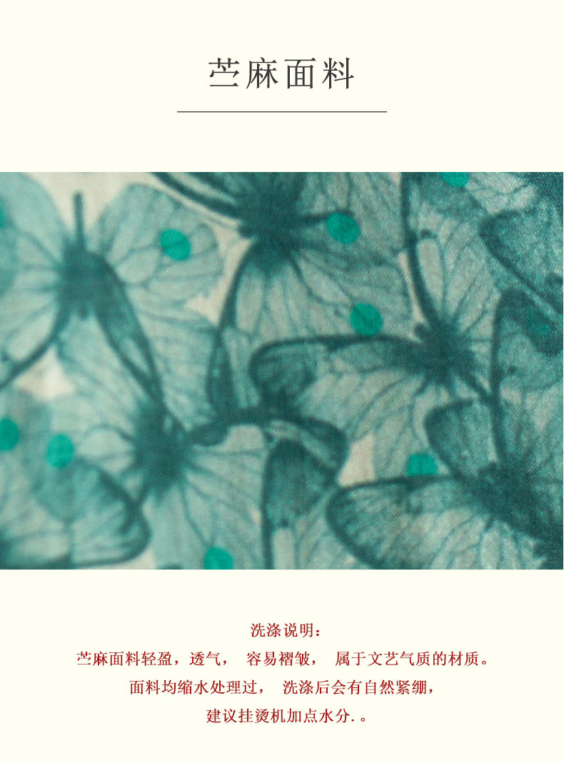 逸红颜旗袍女2024夏新款 蝶泉 中式书卷复古风立领棉麻类类修身裙