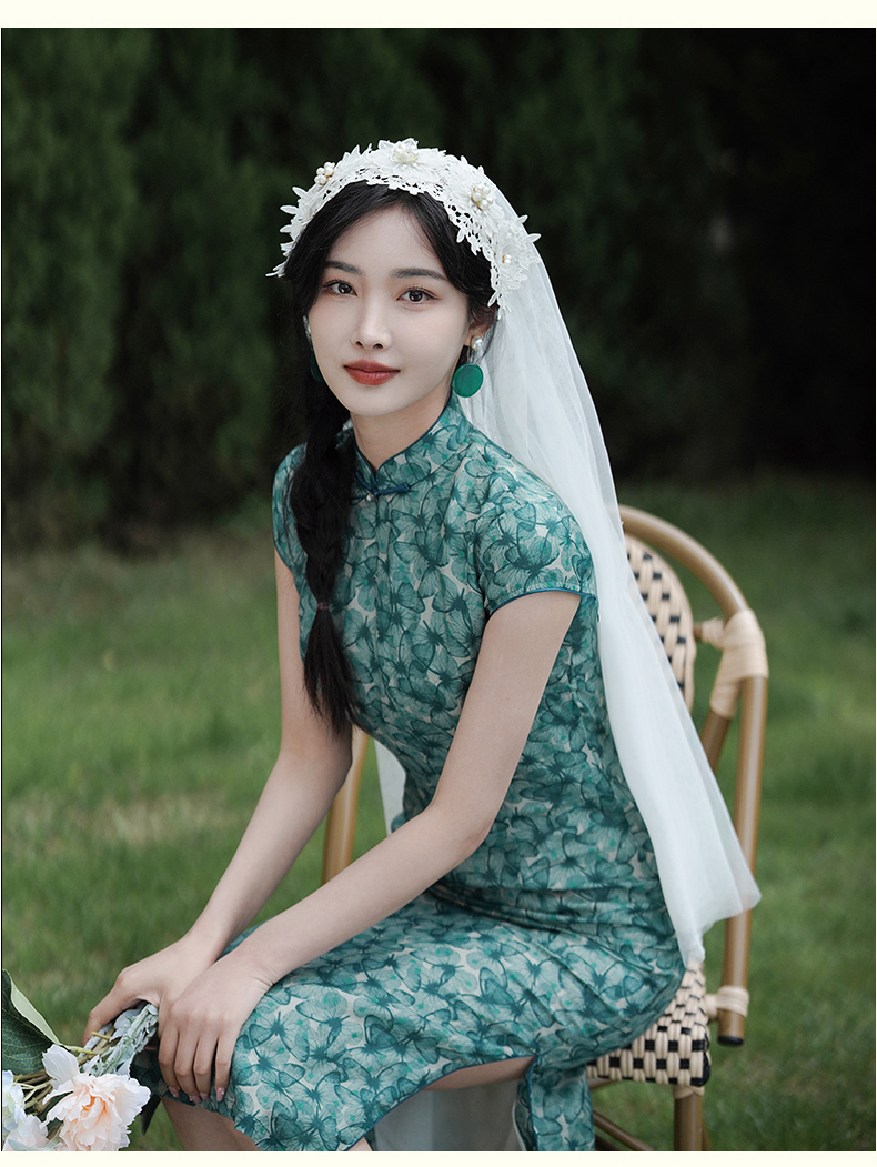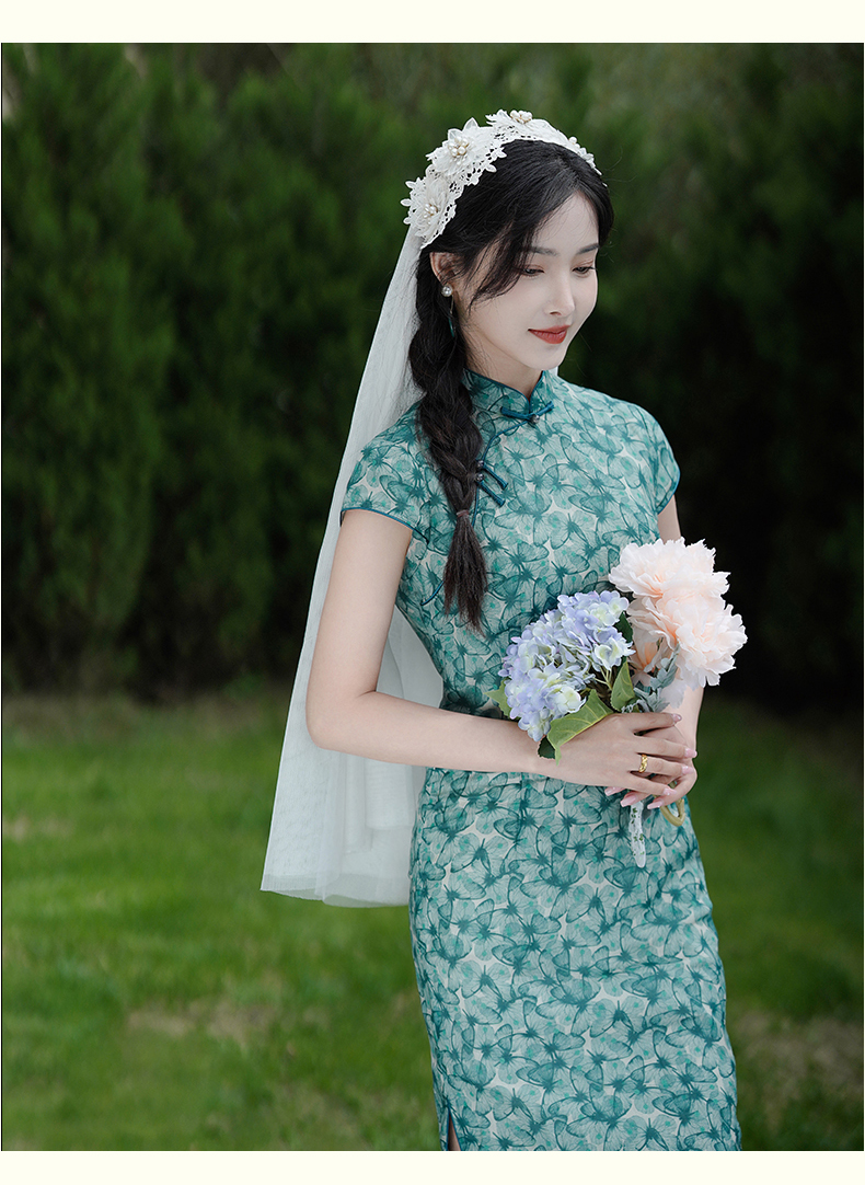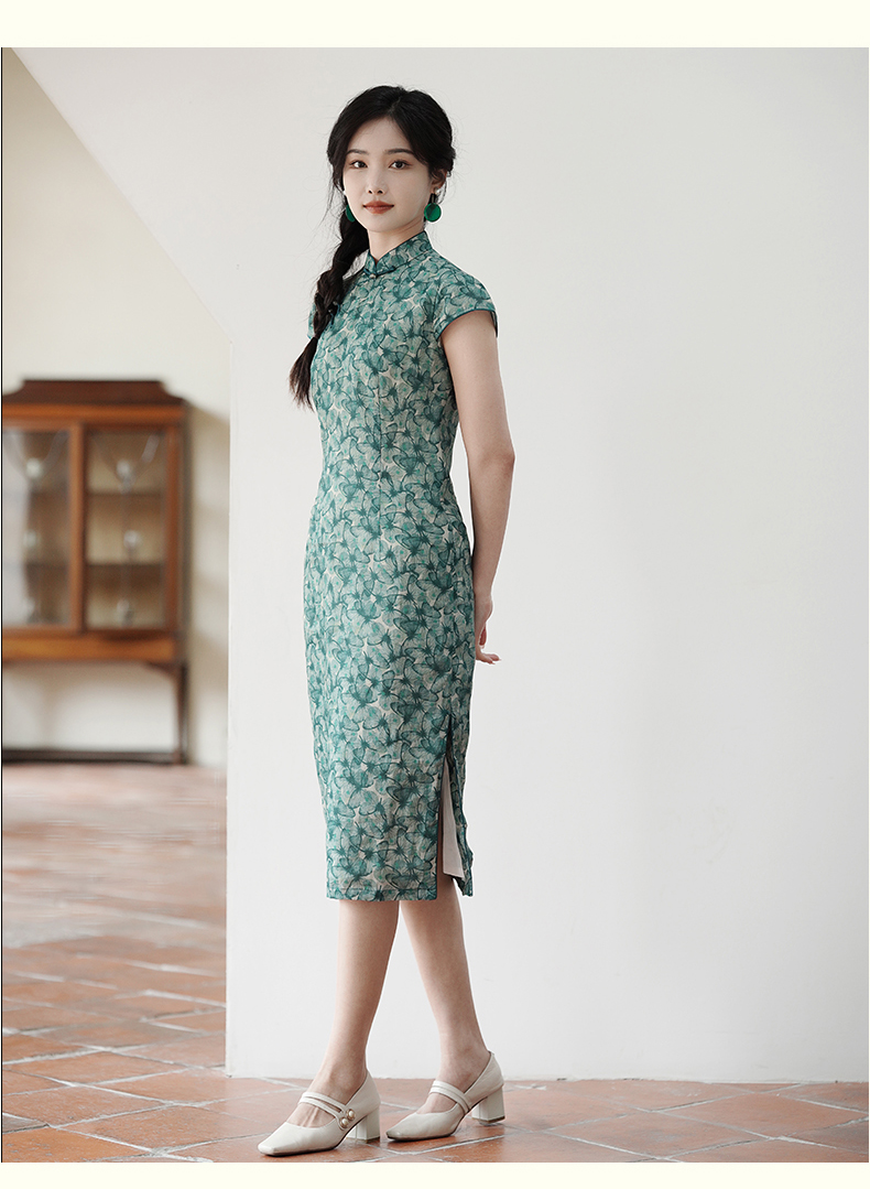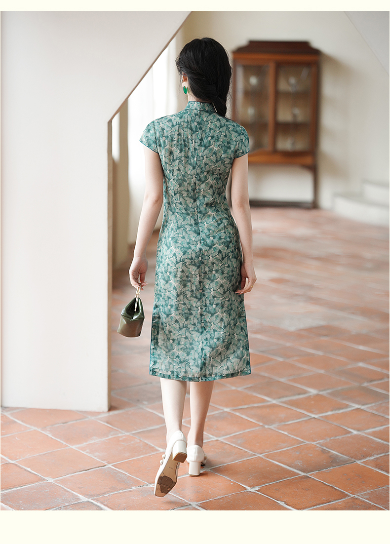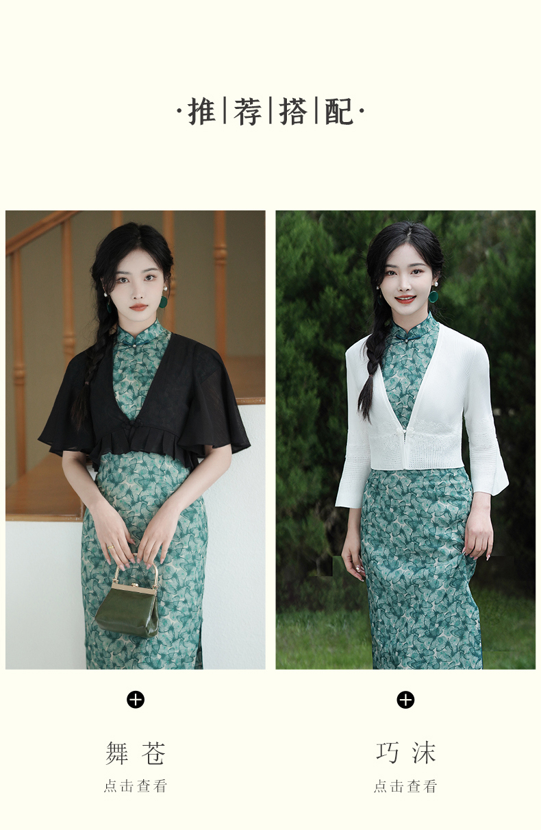 逸红颜旗袍女2024夏新款 蝶泉 中式书卷复古风立领棉麻类类修身裙