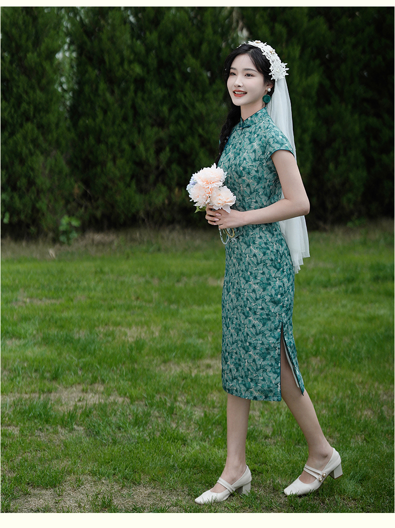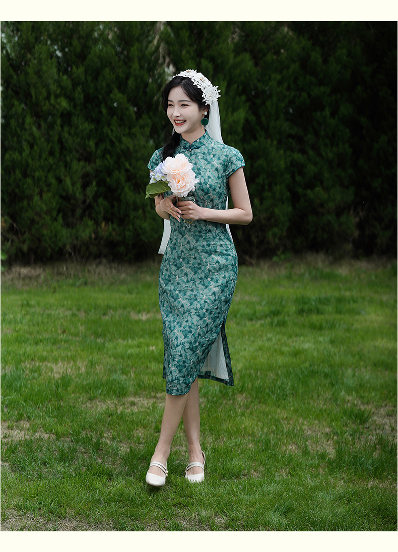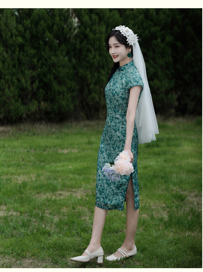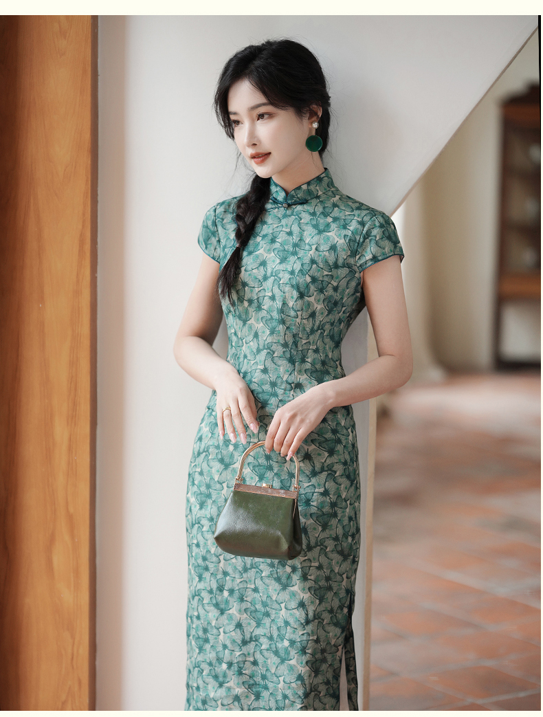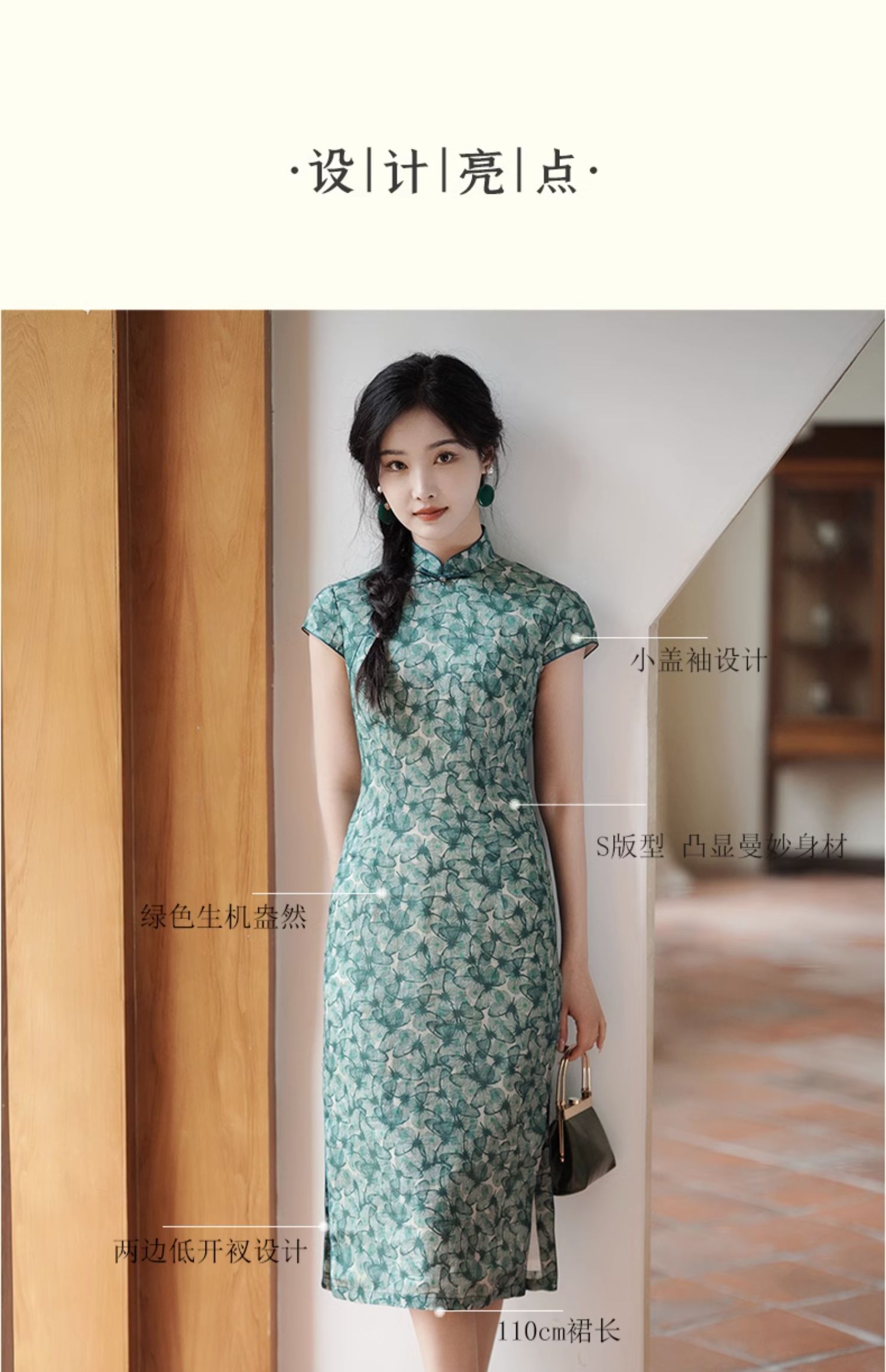 逸红颜旗袍女2024夏新款 蝶泉 中式书卷复古风立领棉麻类类修身裙