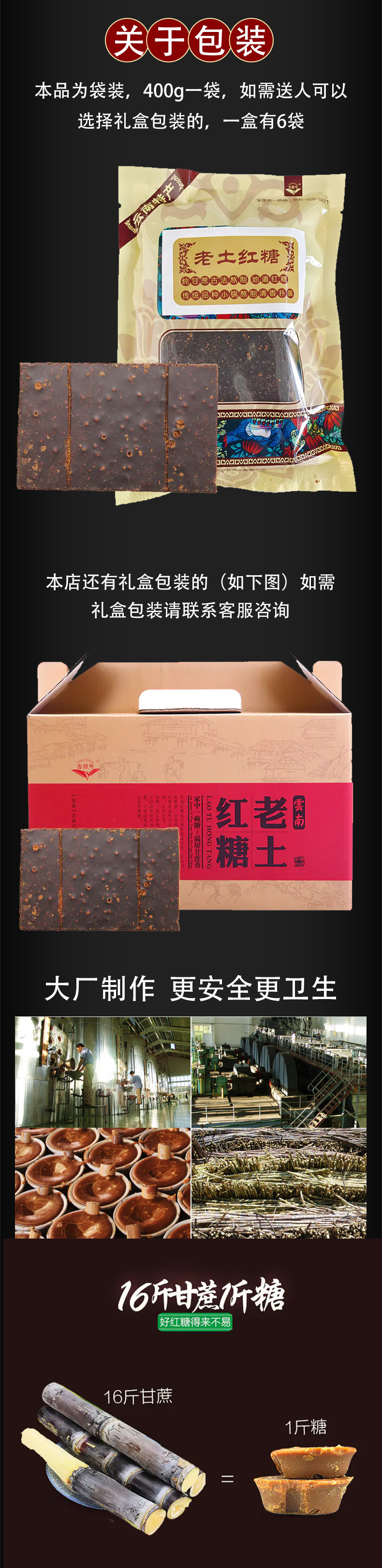 【吉顺号食品】-云南特产老土红糖块 手工红糖月子红糖 400g