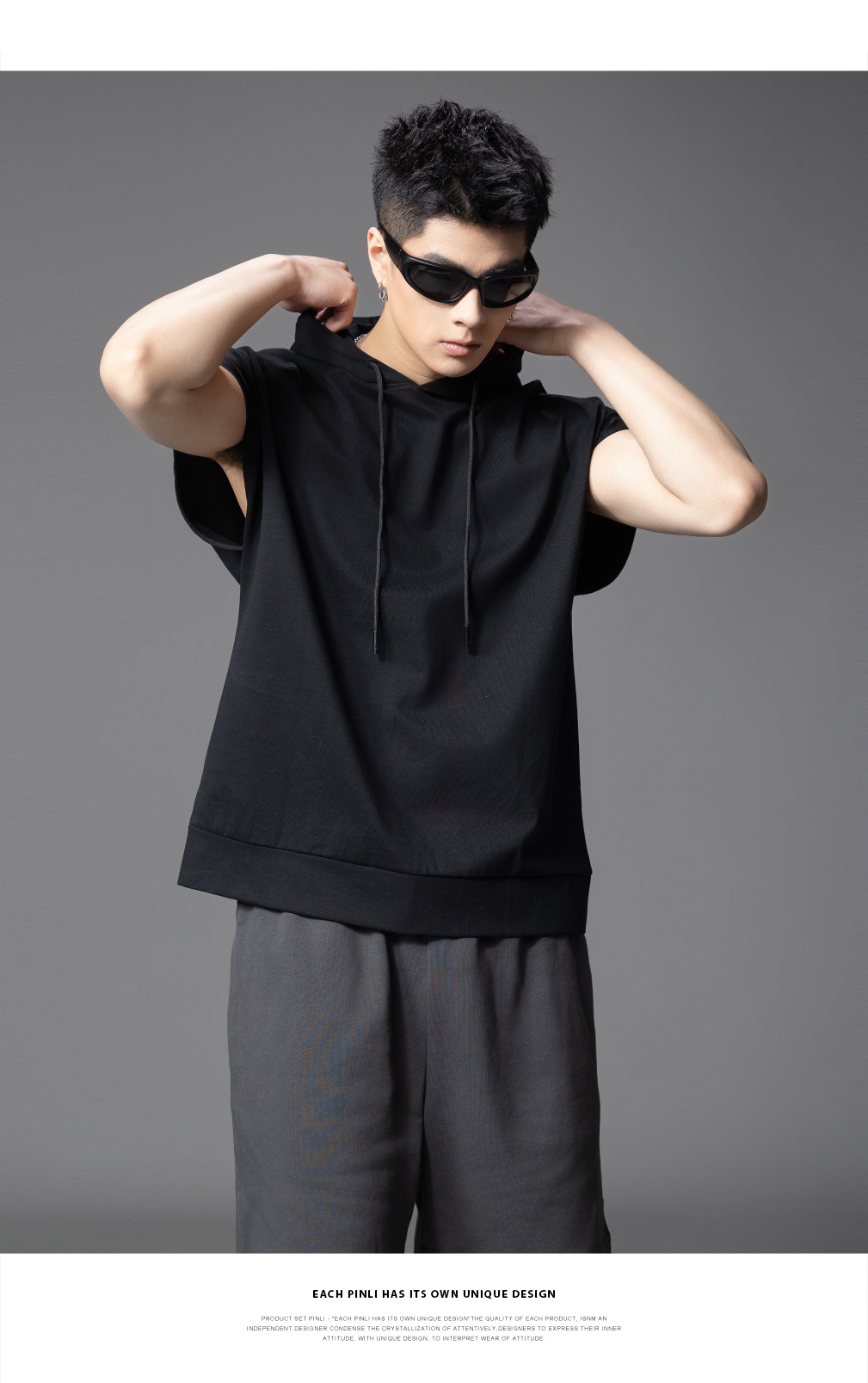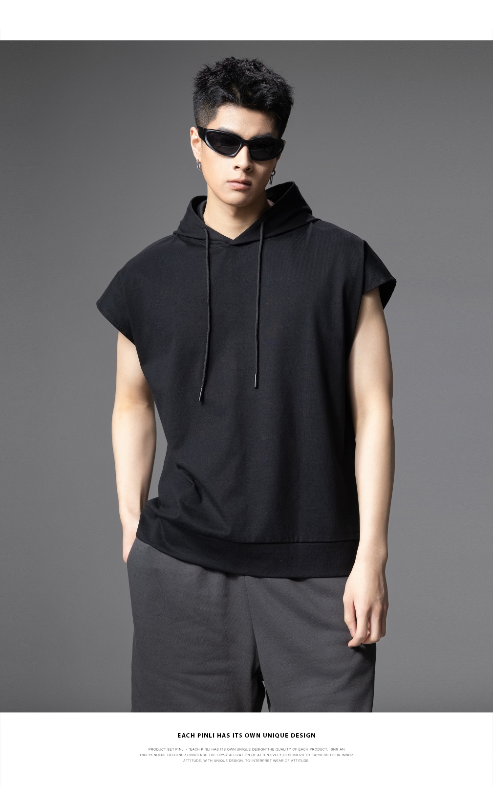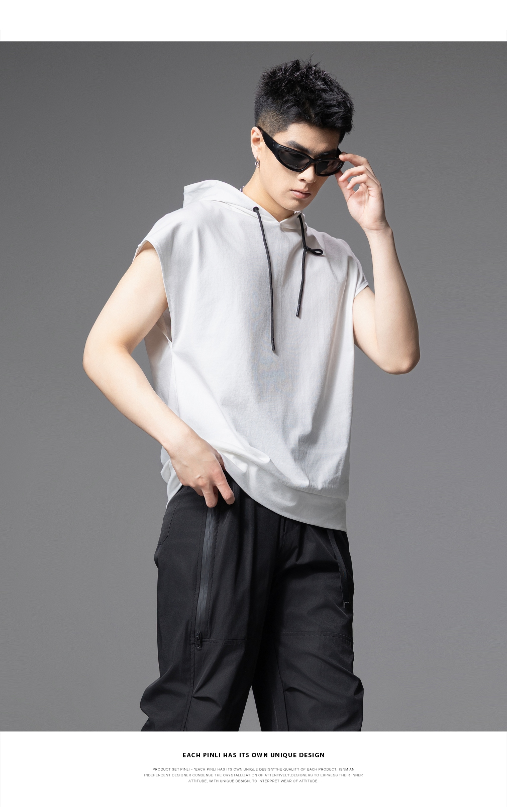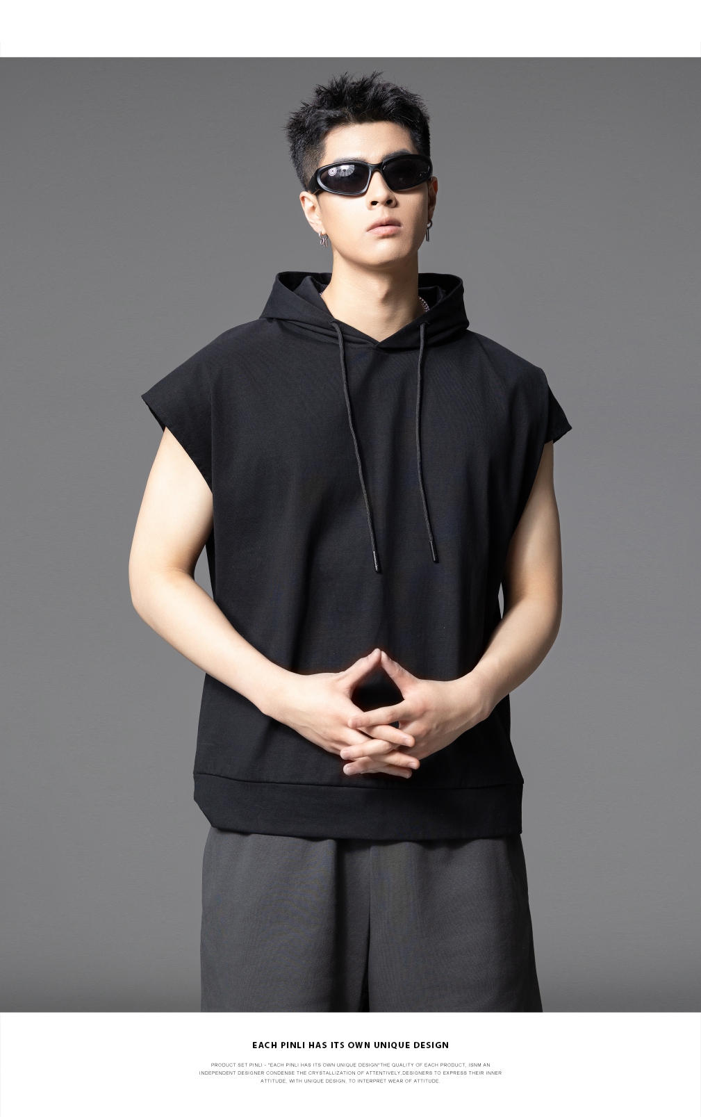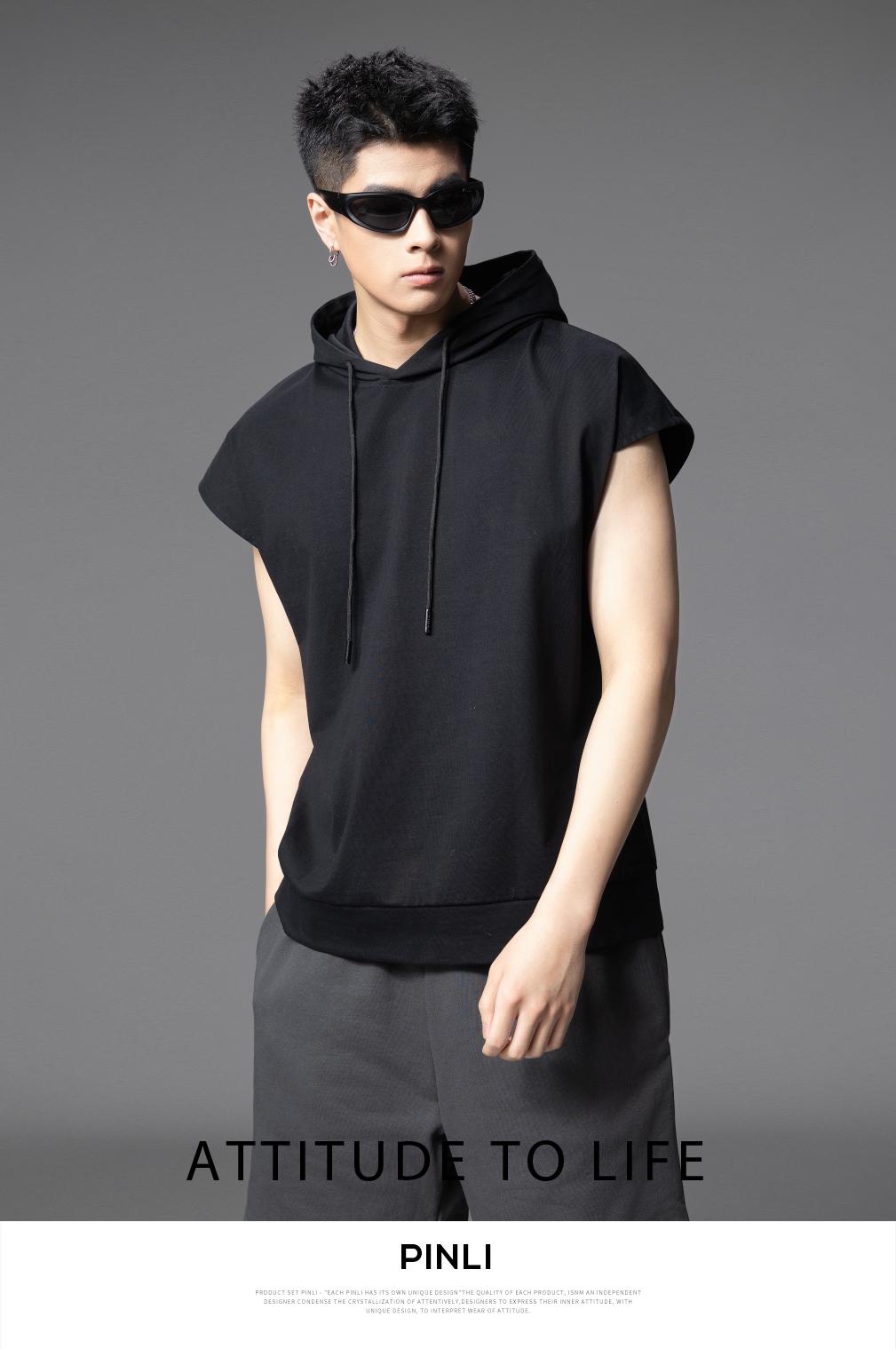 PINLI品立2025夏季新款男士连帽无袖背心美式潮牌宽松休闲上衣GD252114305