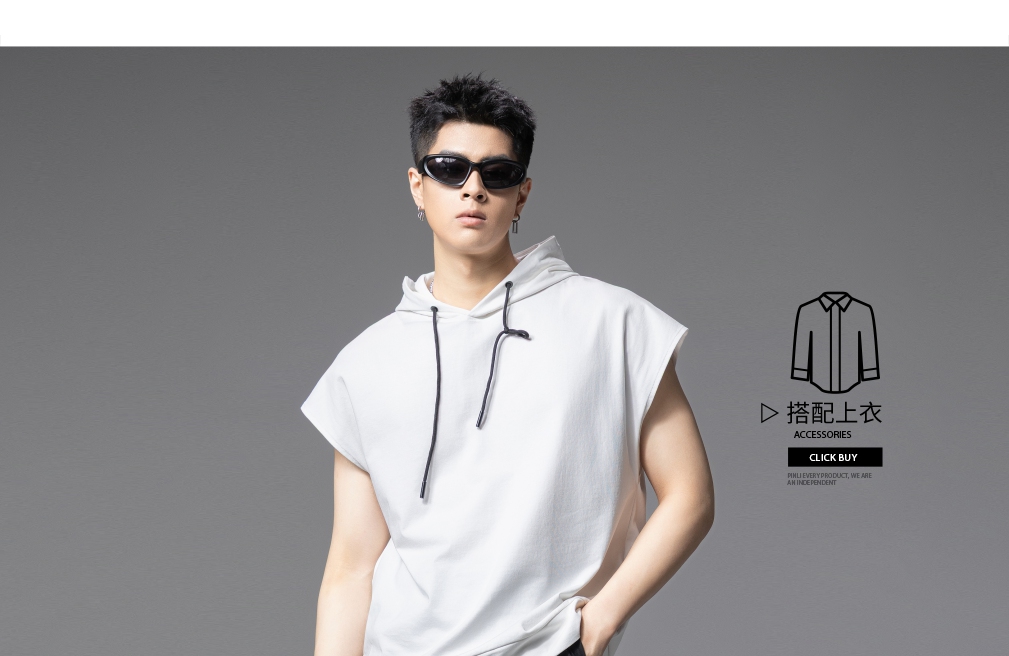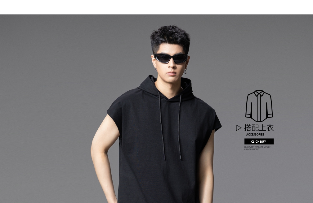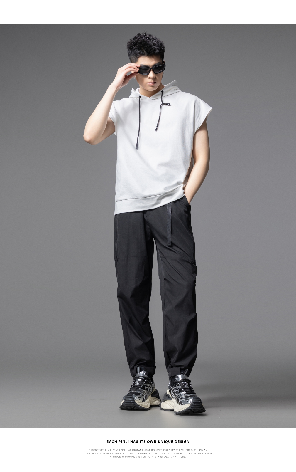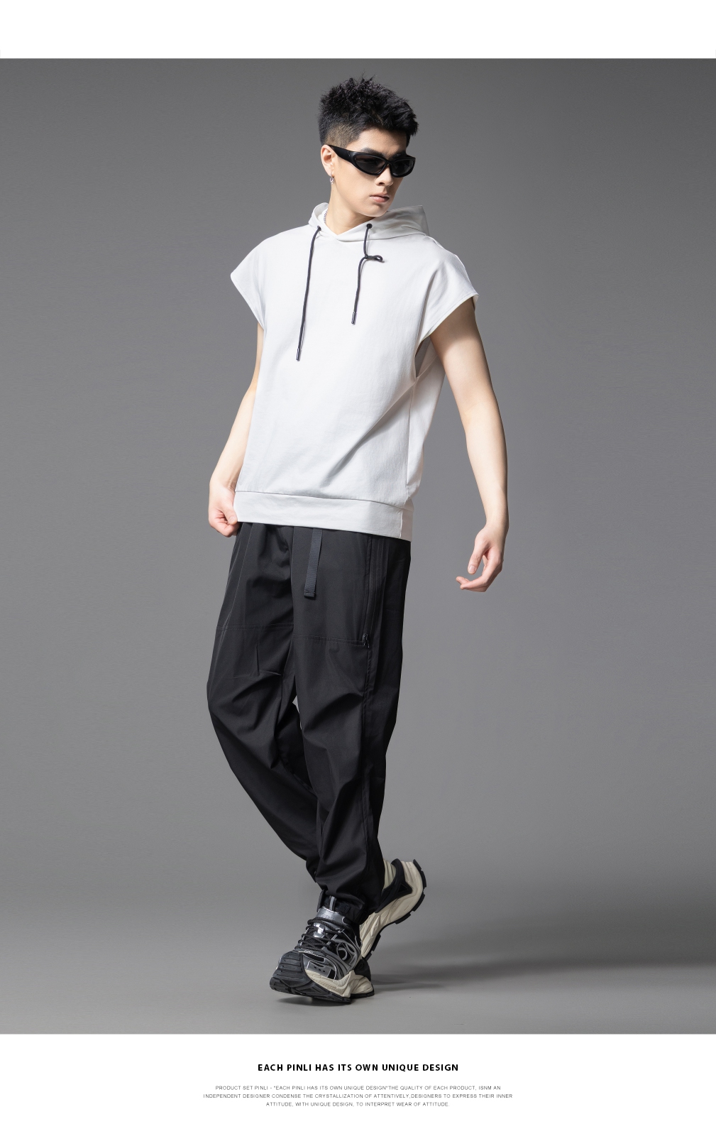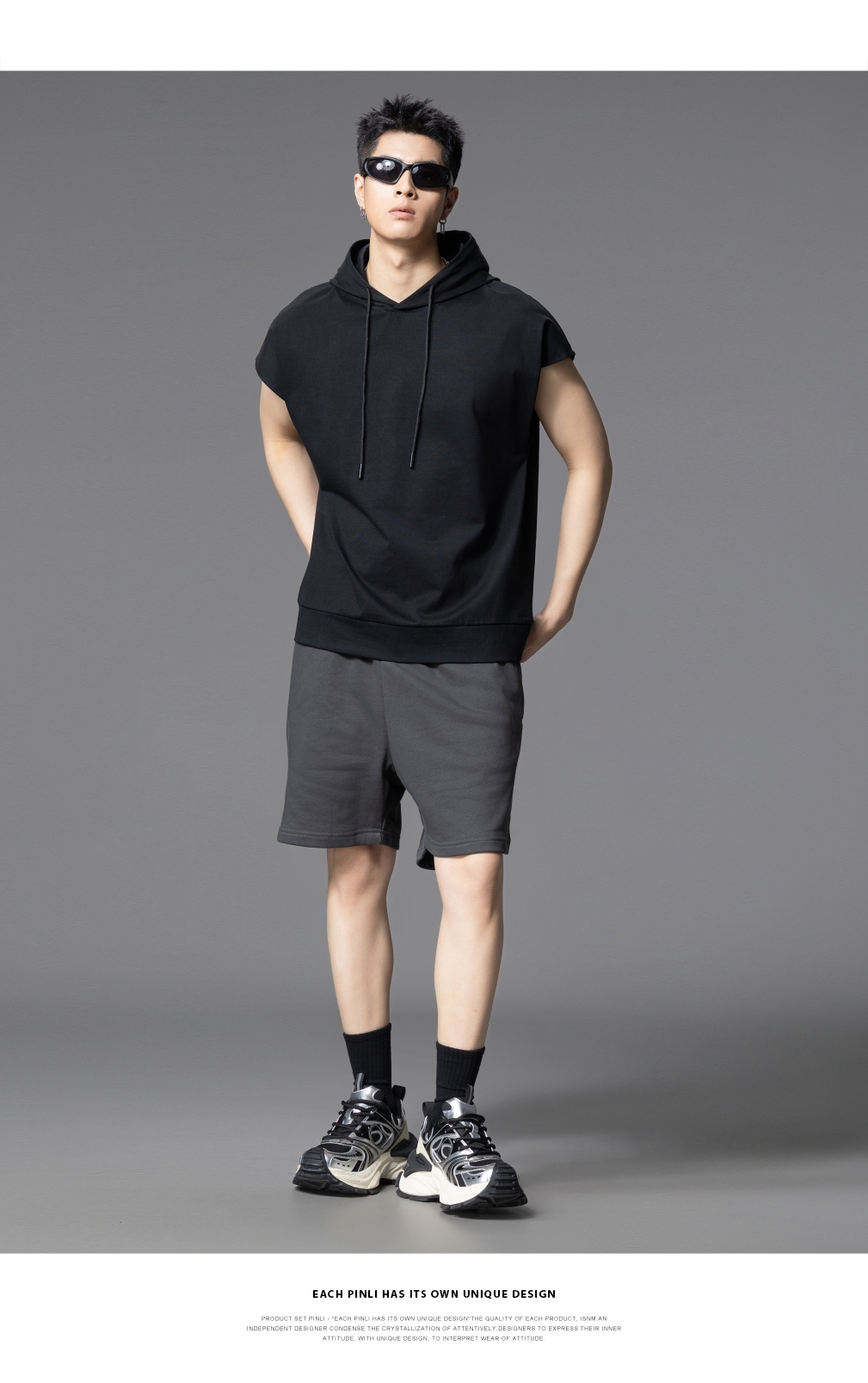 PINLI品立2025夏季新款男士连帽无袖背心美式潮牌宽松休闲上衣GD252114305