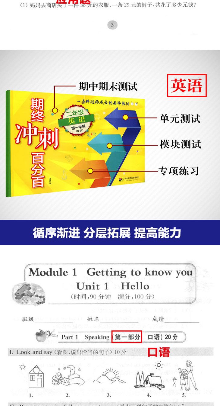 期终冲刺百分百 二年级上 部编版语文+数学+英语N版 上海地区适用