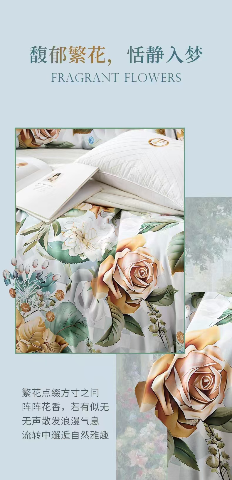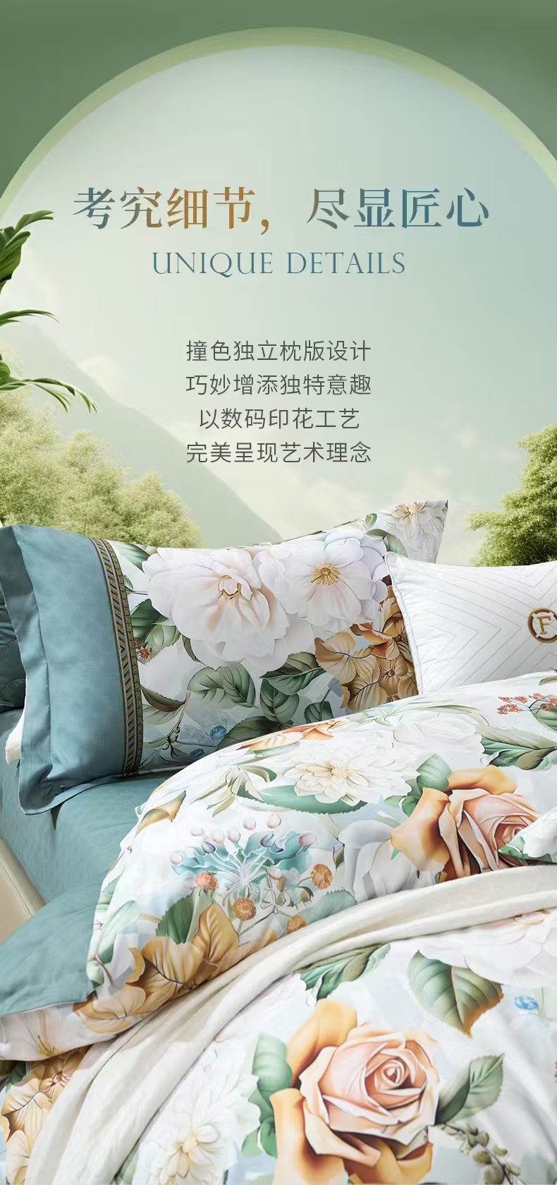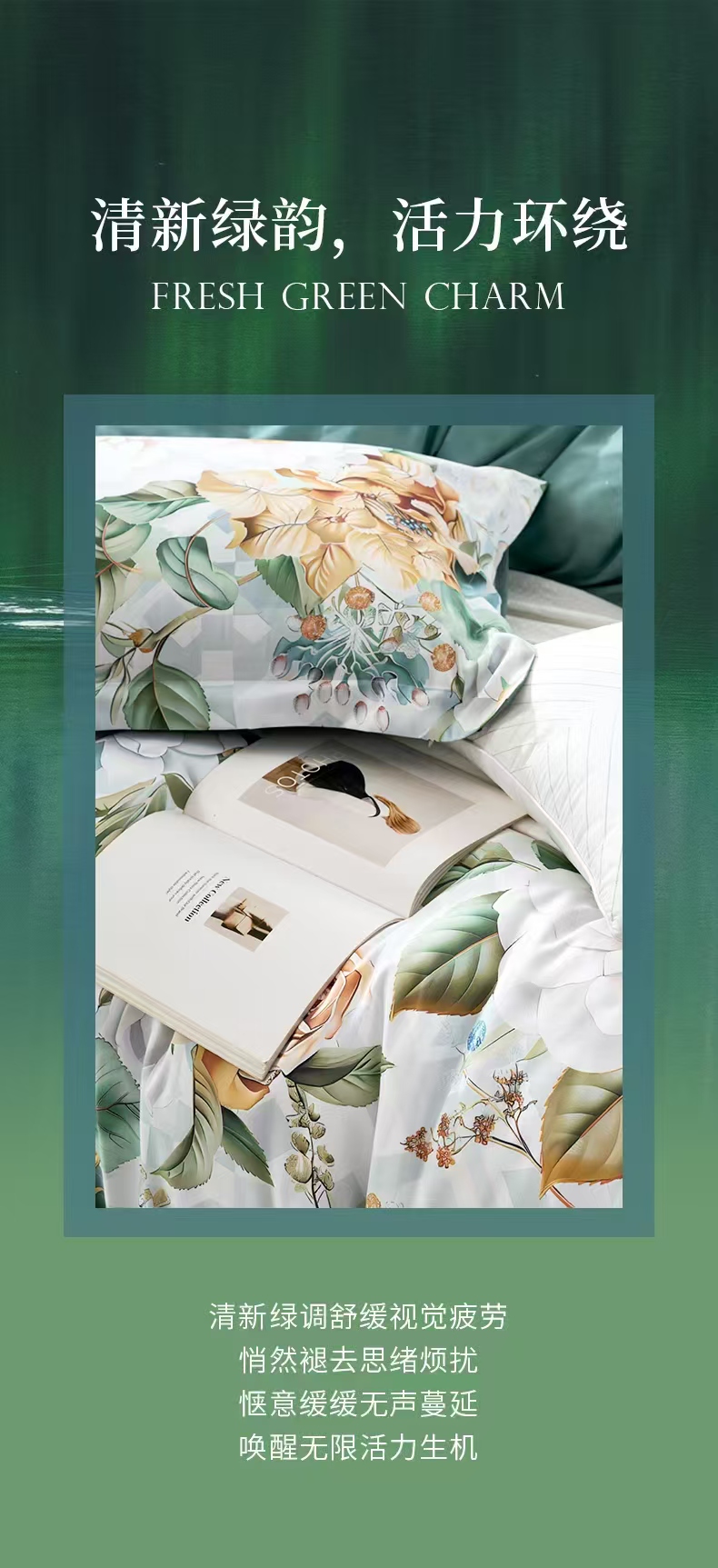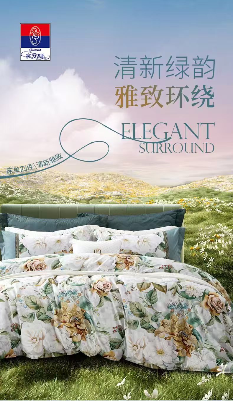 【6楼】富安娜床单四件/清新雅致,绿