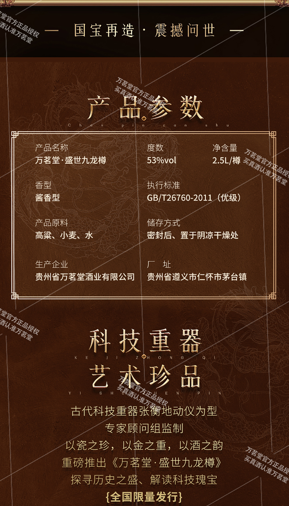 万茗堂盛世九龙樽酱香型高端文创白酒2.5L收藏