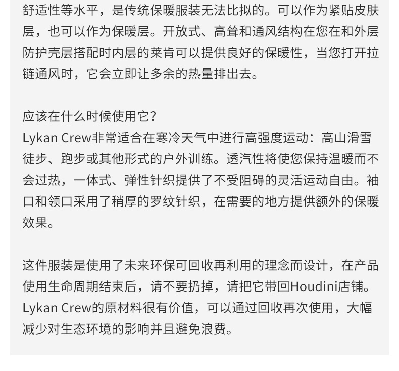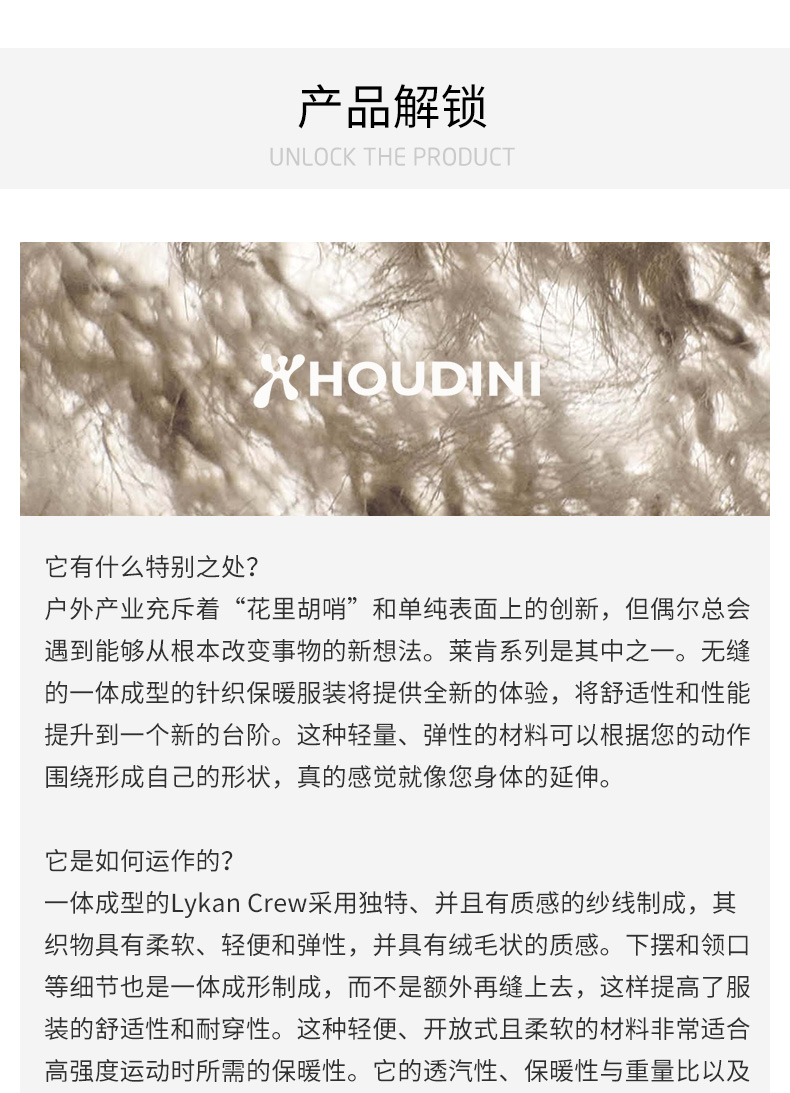 HOUDINI胡丁尼Lykan Crew莱肯户外25秋冬新男套头圆领长袖衫毛衣 830061