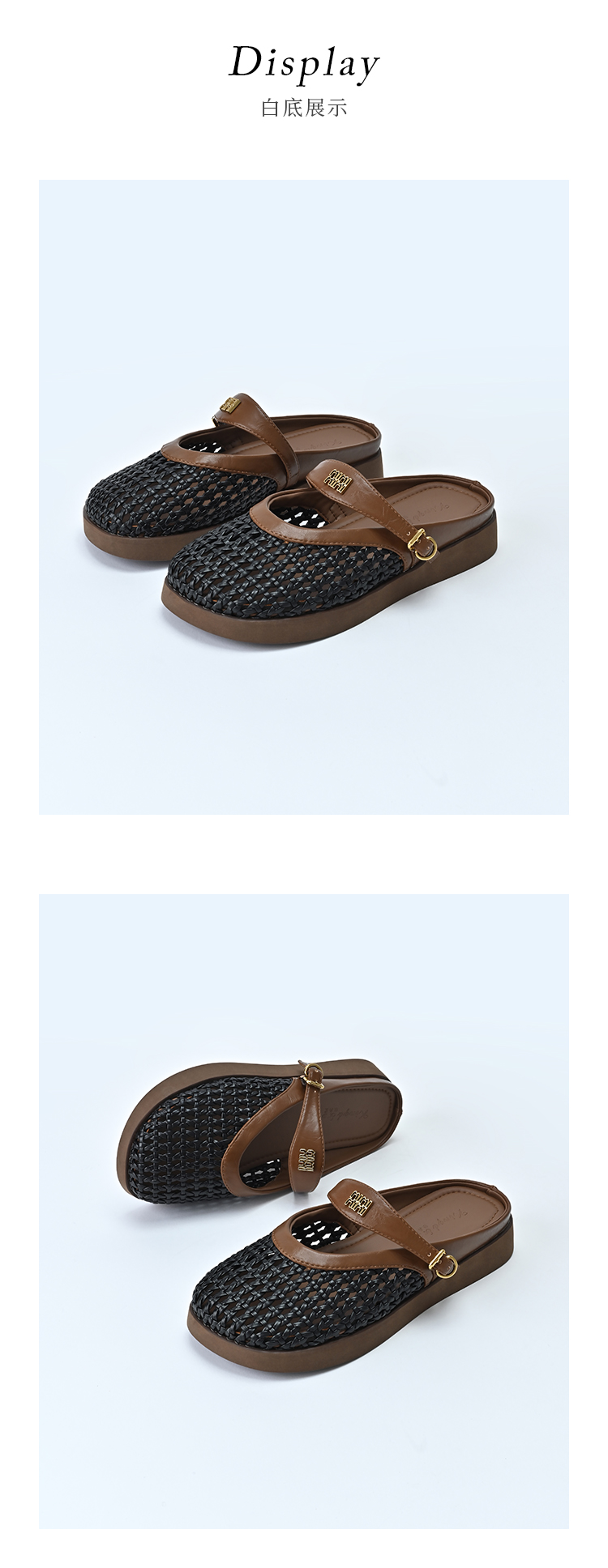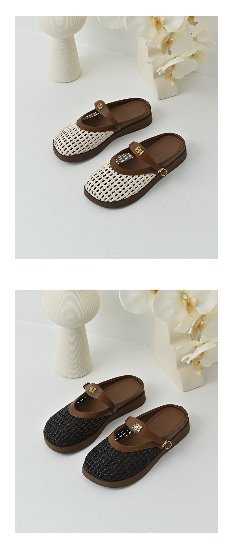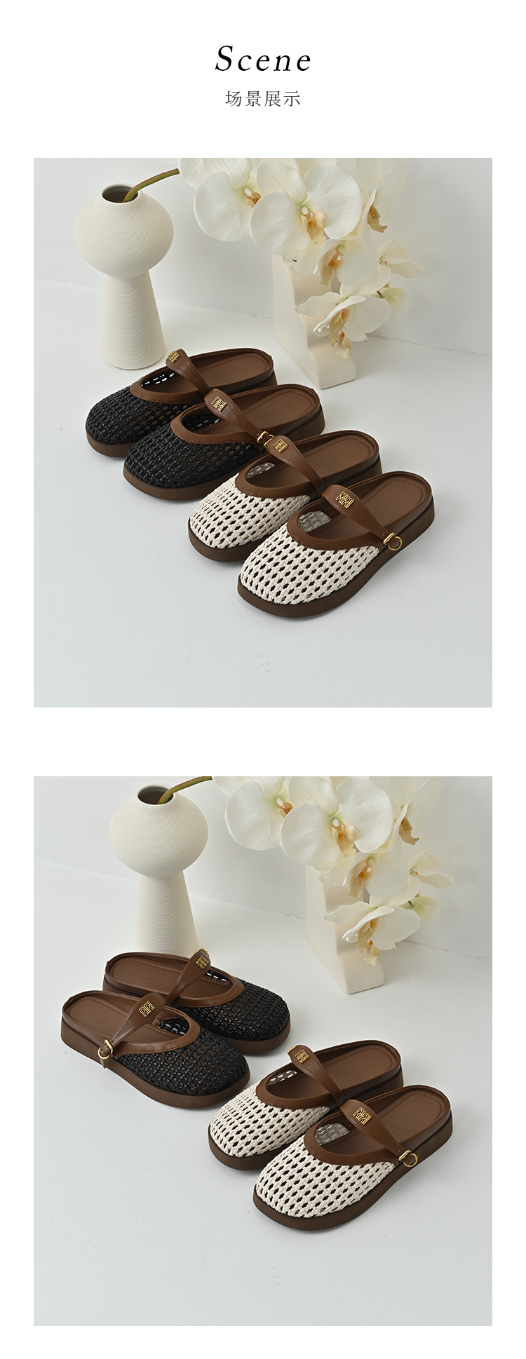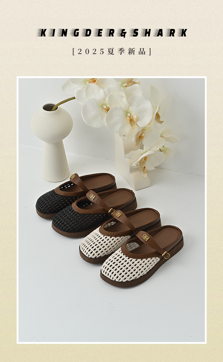 经典鲨2025年夏季新品时尚懒人一脚蹬渔网透气包头凉拖鞋女KW359-529011