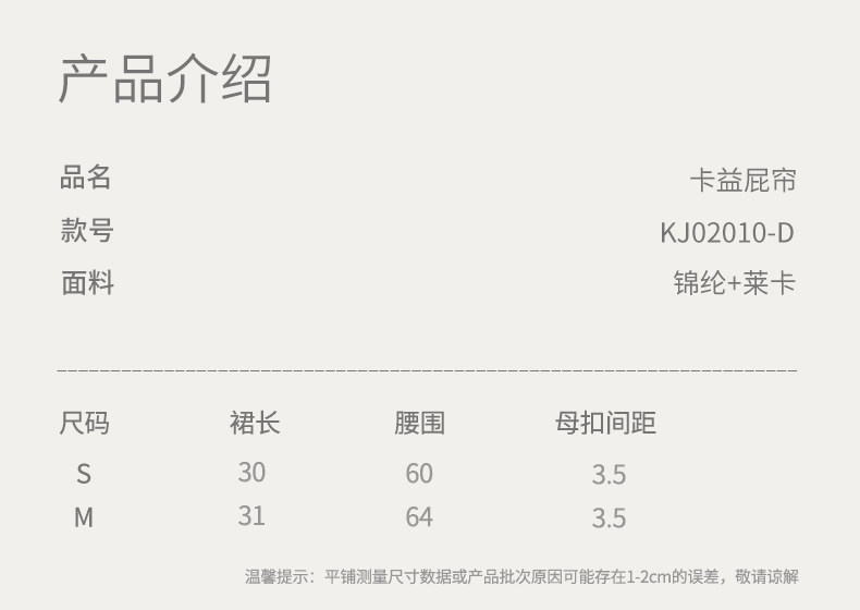 KJ02010-D 卡益一片式遮光短裙-电商