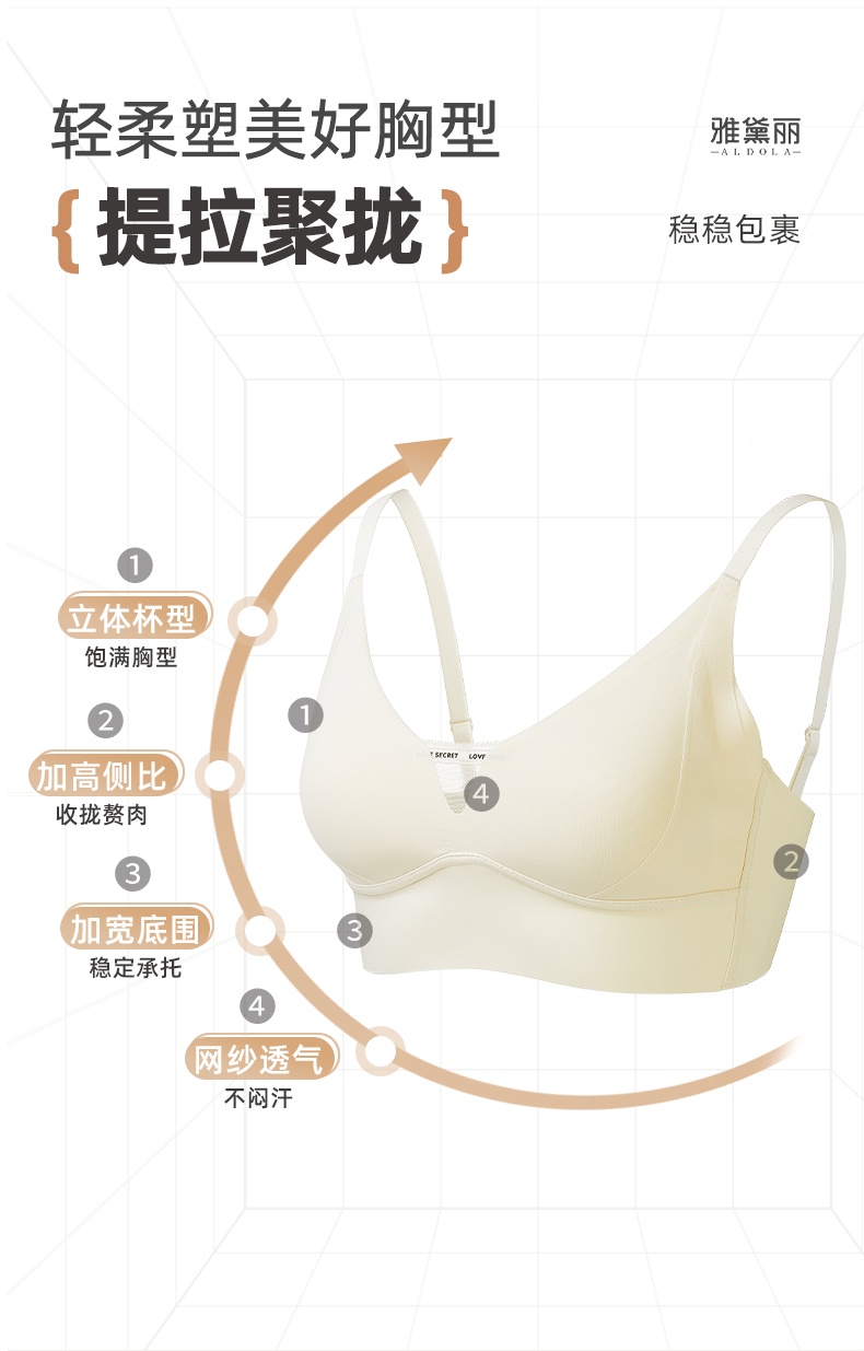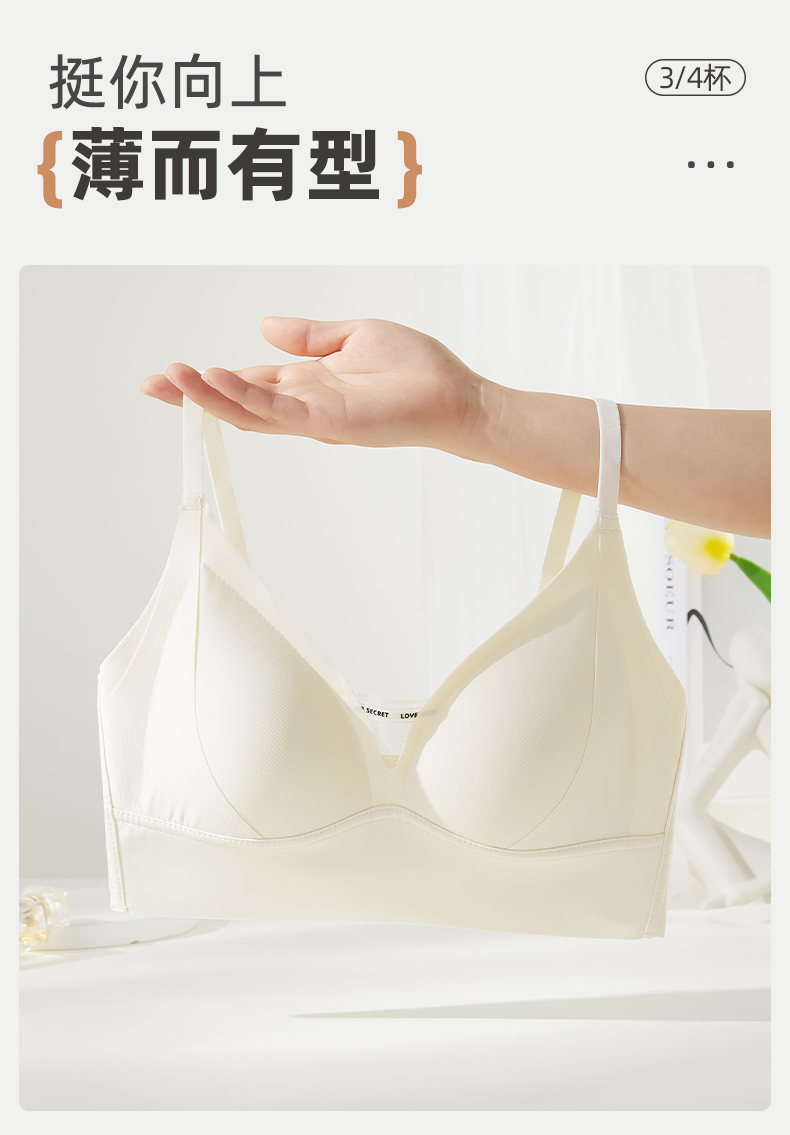 雅黛丽无痕内衣小胸薄款深V聚拢性感光面文胸无钢圈高弹裸感胸罩