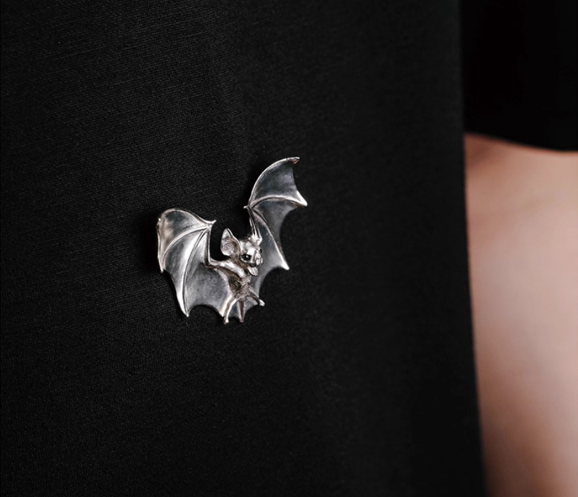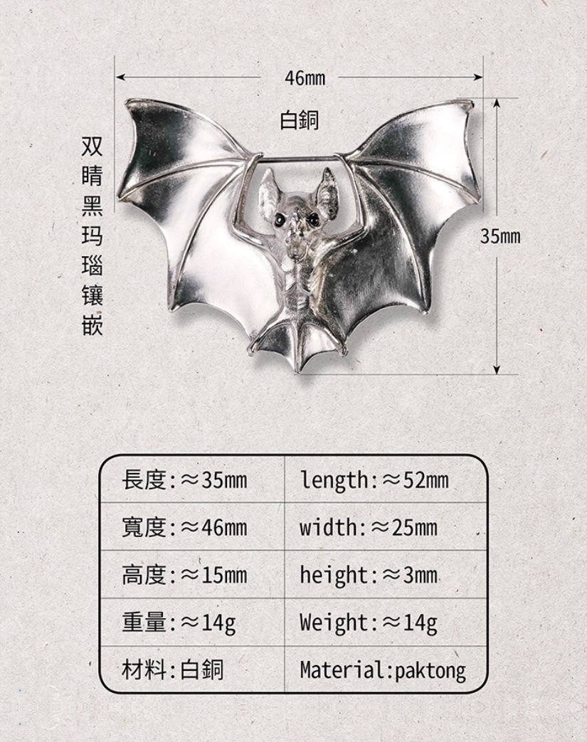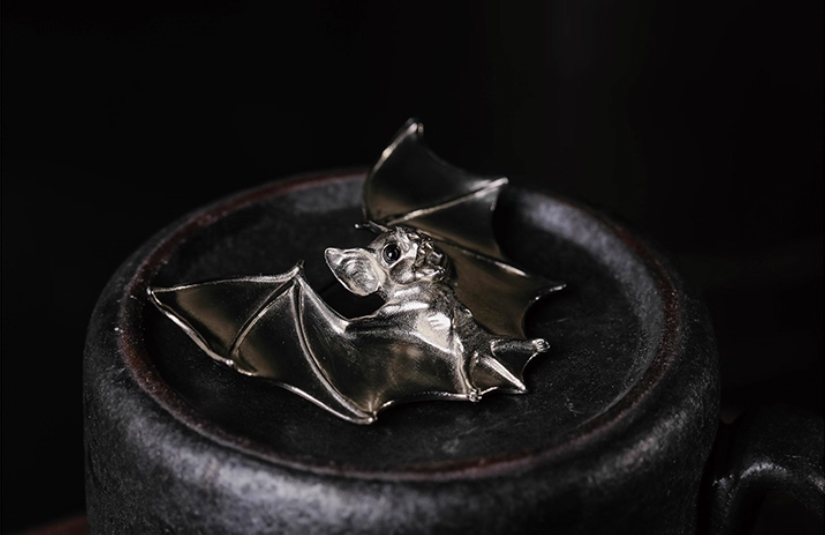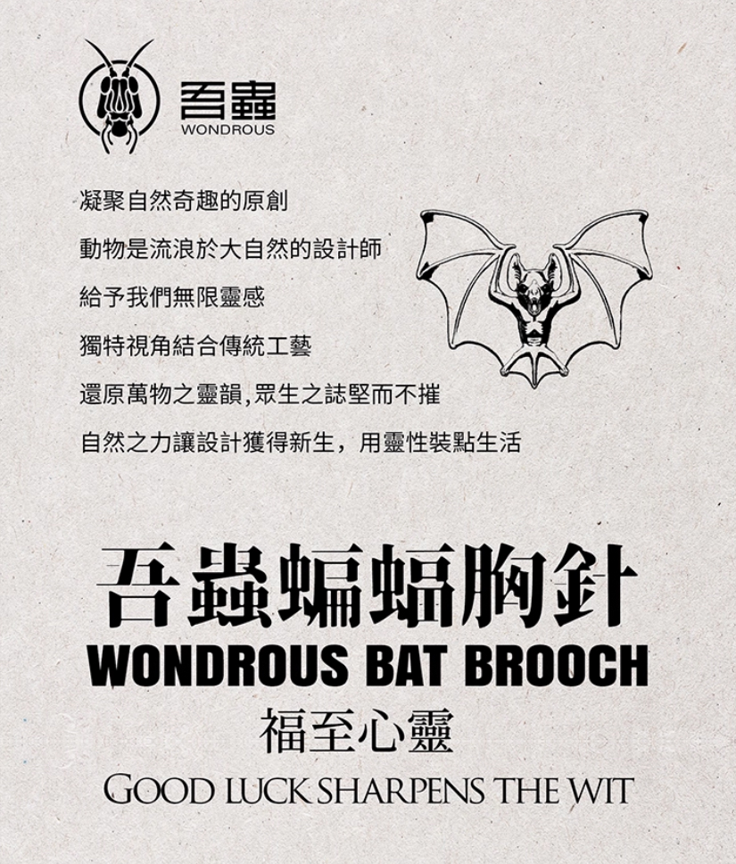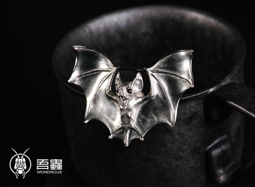 吾蟲-蝙蝠胸针 白铜镶嵌黑玛瑙 个性配饰礼品【官方授权 48小时发货】