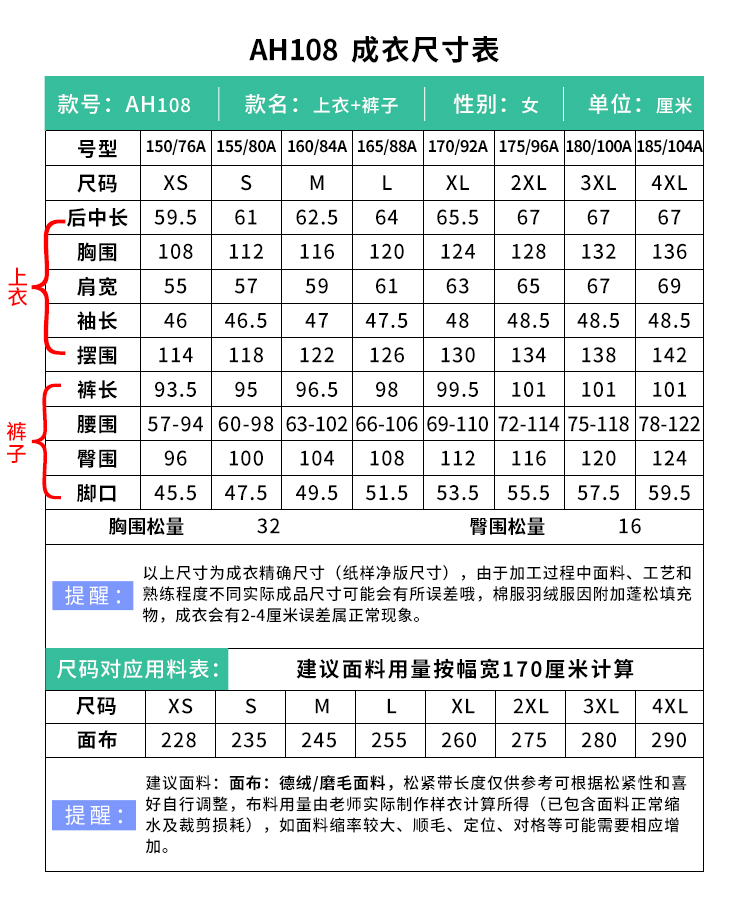 裁缝学苑AH108韩版磨毛德绒睡衣纸样女装冬季保暖家居服套装服装打板