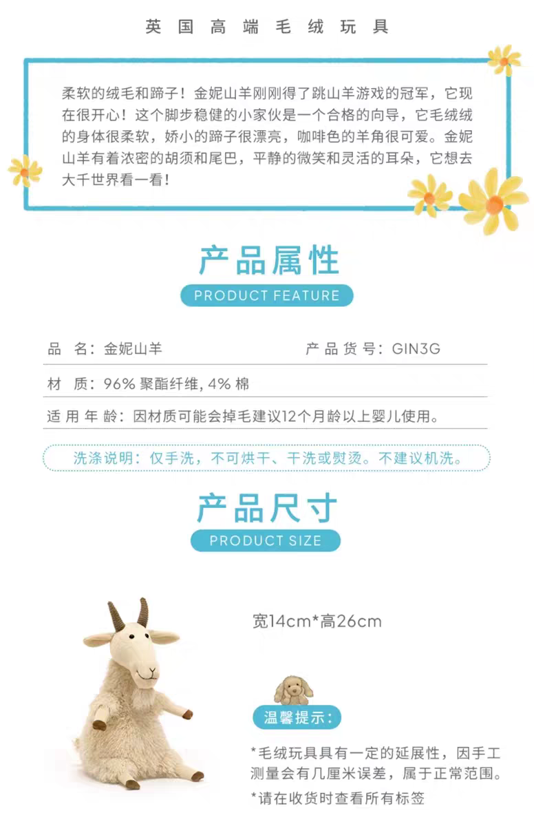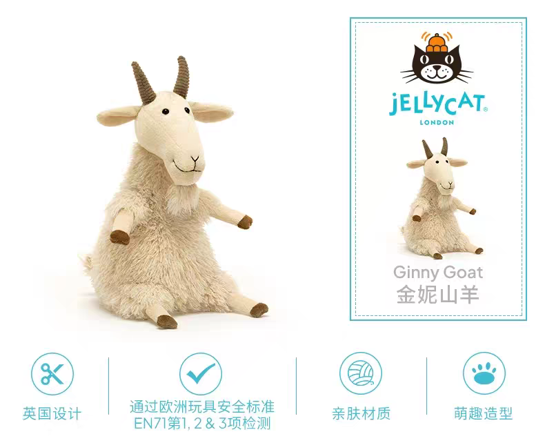 英国Jellycat金妮山羊毛绒安抚玩偶玩具娃娃公仔送礼cj