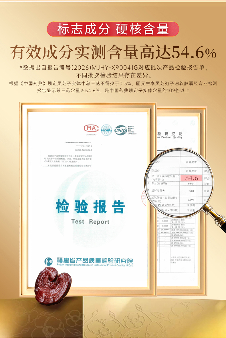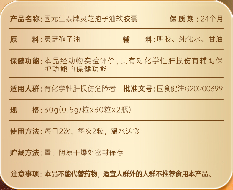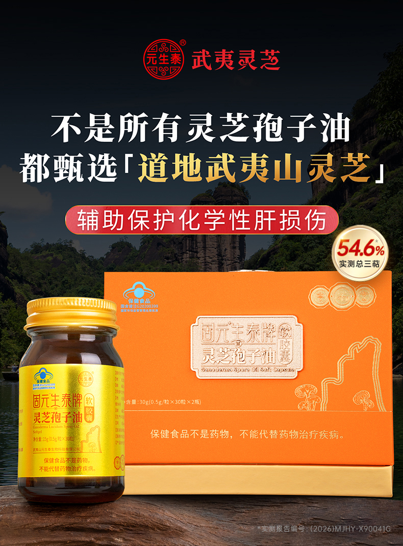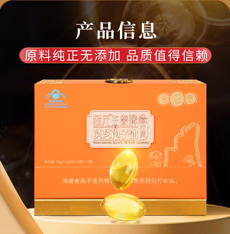 【高三萜23%】固元生泰孢子油软胶囊0.5g*60粒保肝护肝 中老年人营养滋补保健品