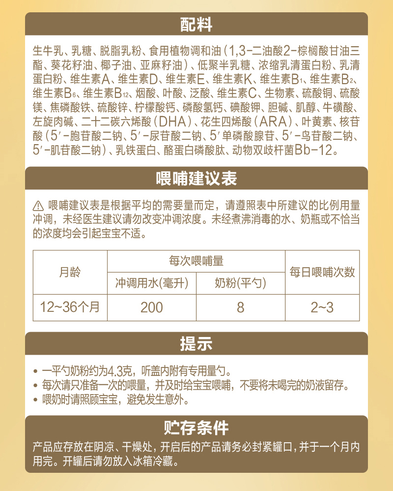 飞鹤星飞帆卓睿3段12-36个月婴儿配方奶粉 750g