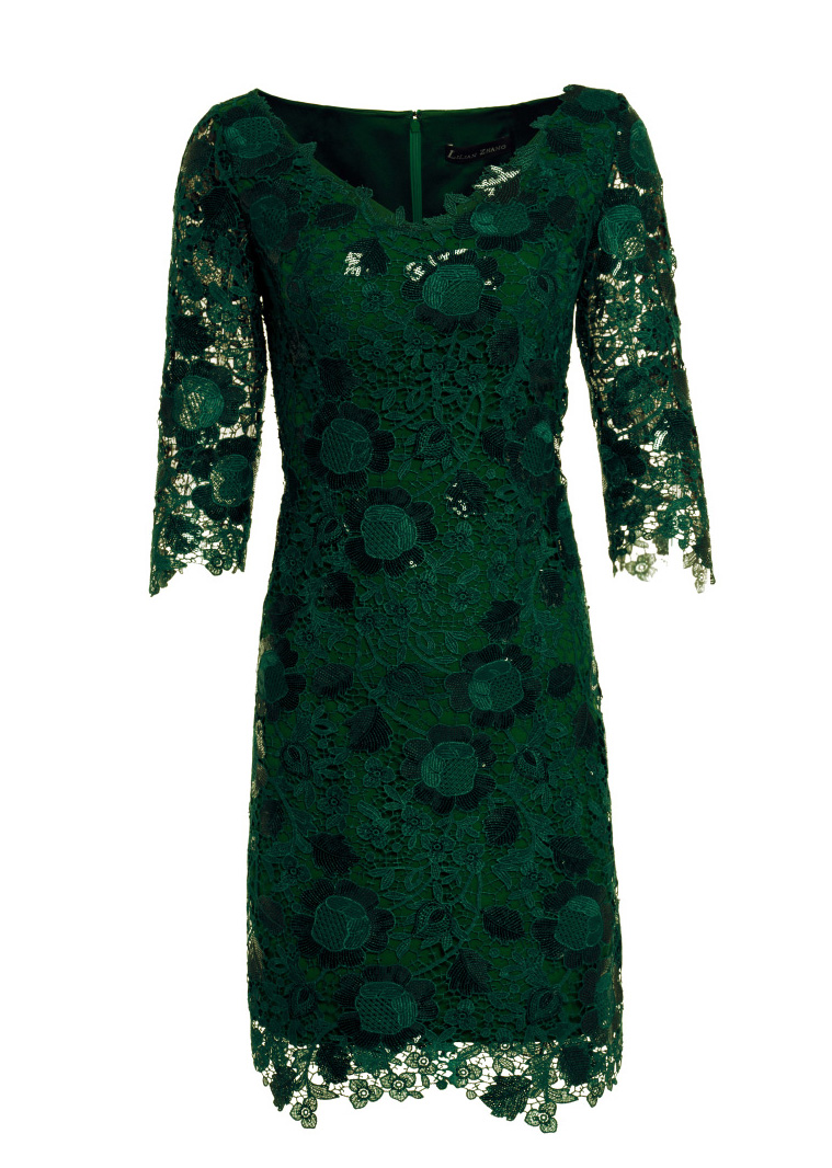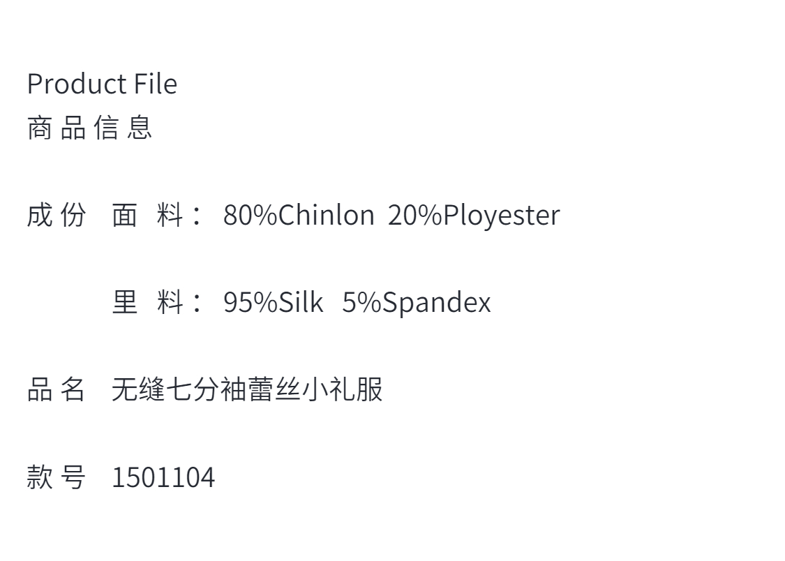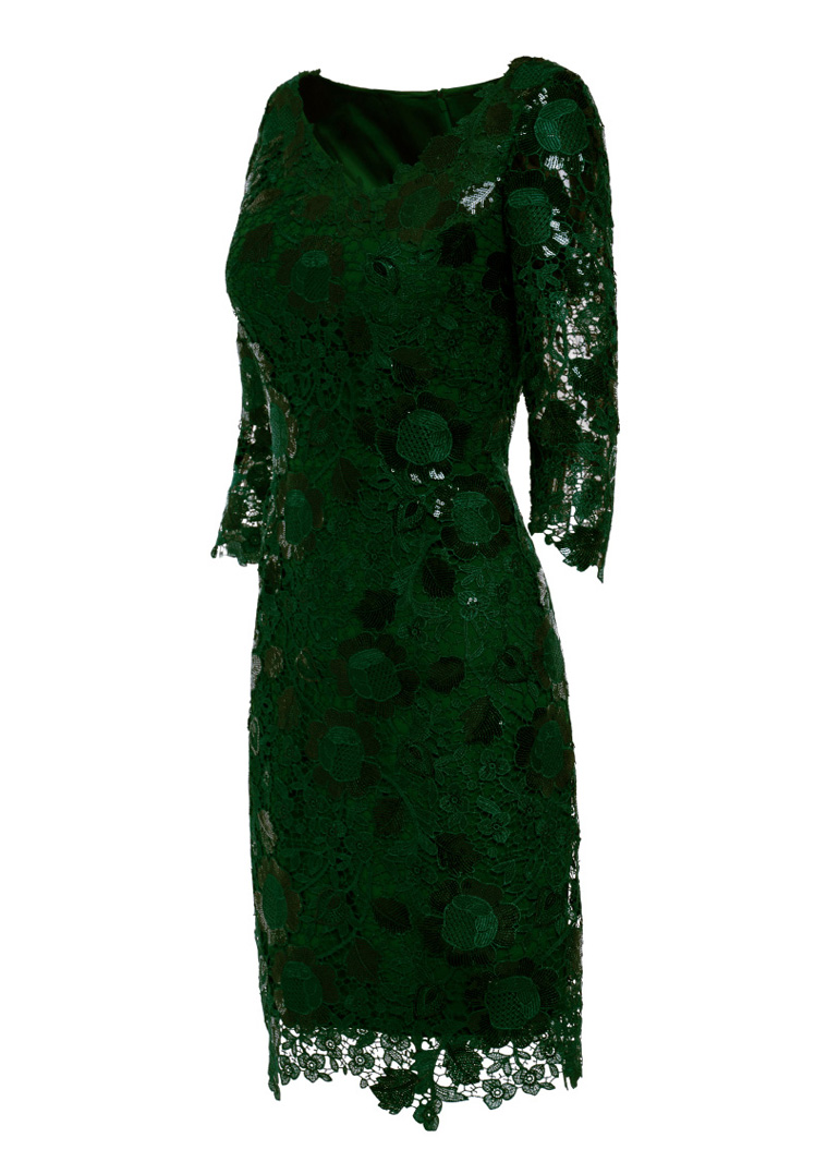 高奢定制 - 纯手工无缝七分袖蕾丝优雅重工小礼服连衣裙 1501104