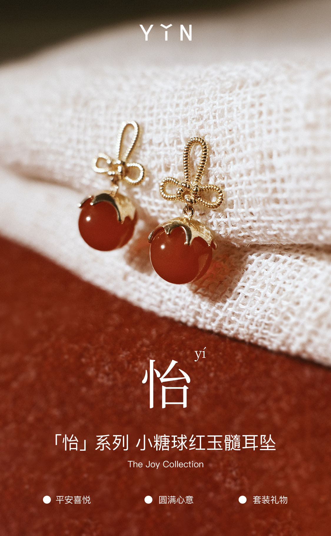 「怡」小糖球冰糖葫芦18K金耳饰万字结