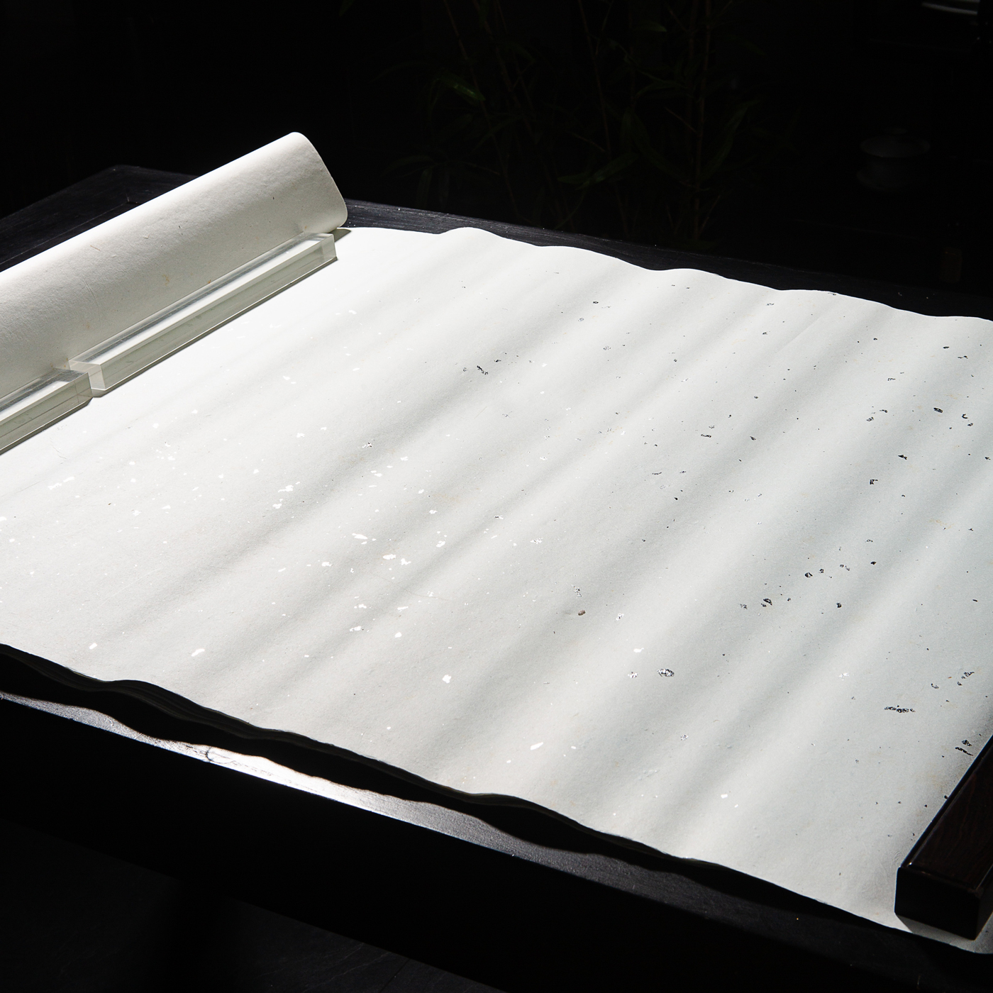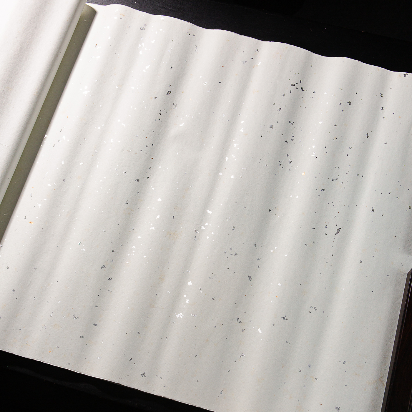 70-80年代安徽十竹斋制洒银笺,质地坚厚紧实,颜色淡雅清秀,洒真银高贵富丽,原包装完整一卷,品相保存完美。