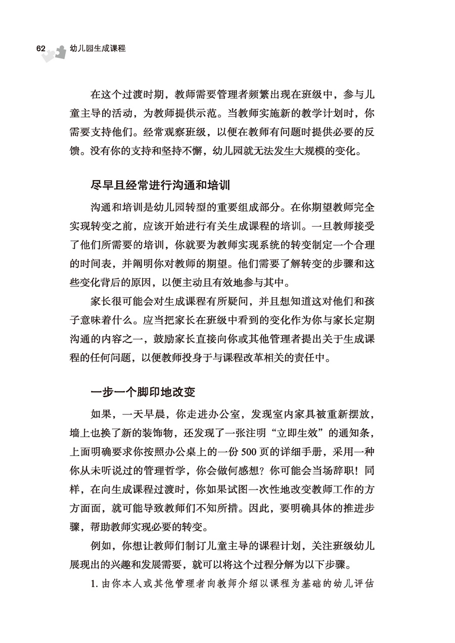 本书作者在学前教育领域深耕20多年,有着丰富的教学与管理经验,提出游戏与学习不是二元对立的,以幼儿的兴趣为基础的生成课程可以通过发展适宜性游戏帮助幼儿做好入学准备。同时,作者用大量的案例阐释了有益的入学准备是什么样的、如何发现和利用游戏中的教育契机、如何培训教师并引导家长参与课程以及培养幼儿社会情绪、书写、问题解决等能力的有效方法,以促进幼儿的深度学习。
