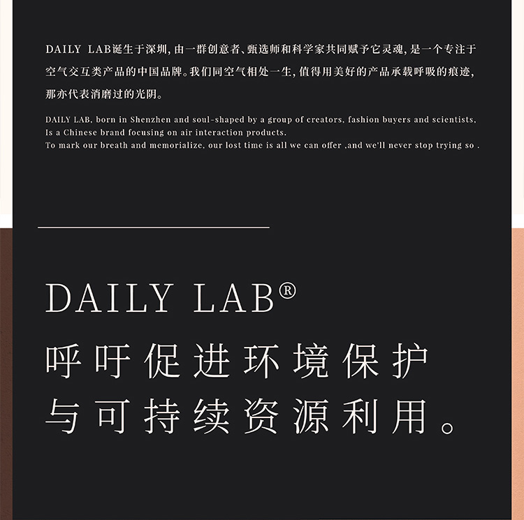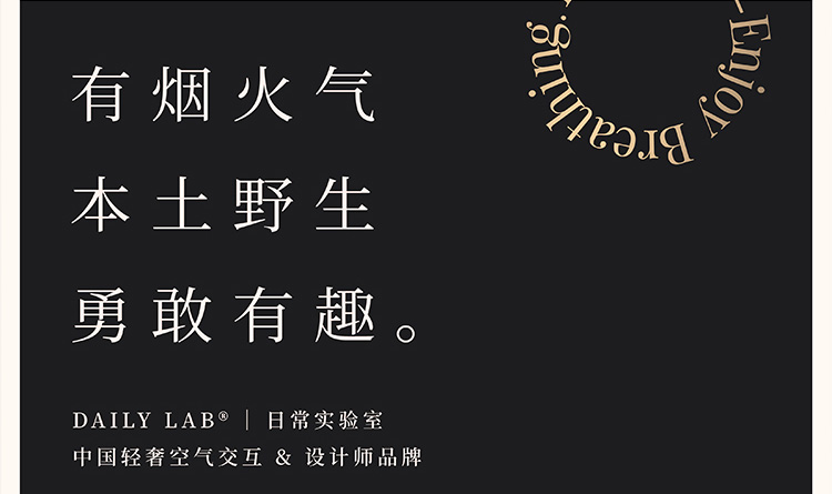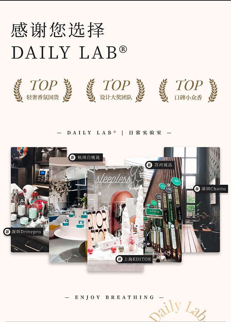 - DAILY LAB|日常实验室,立足东方美学,是专注于「香气可视化」的轻奢空气交互品牌。