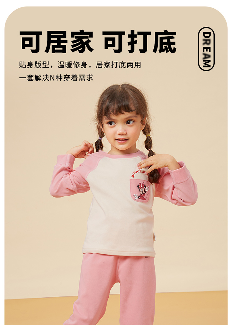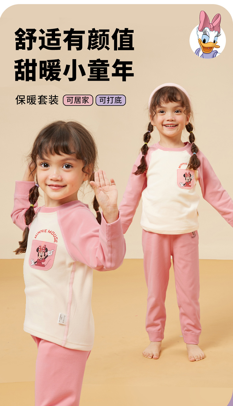 迪士尼童装女童套装可爱米妮保暖长袖家居服舒适柔软年秋新品ZD3CT003