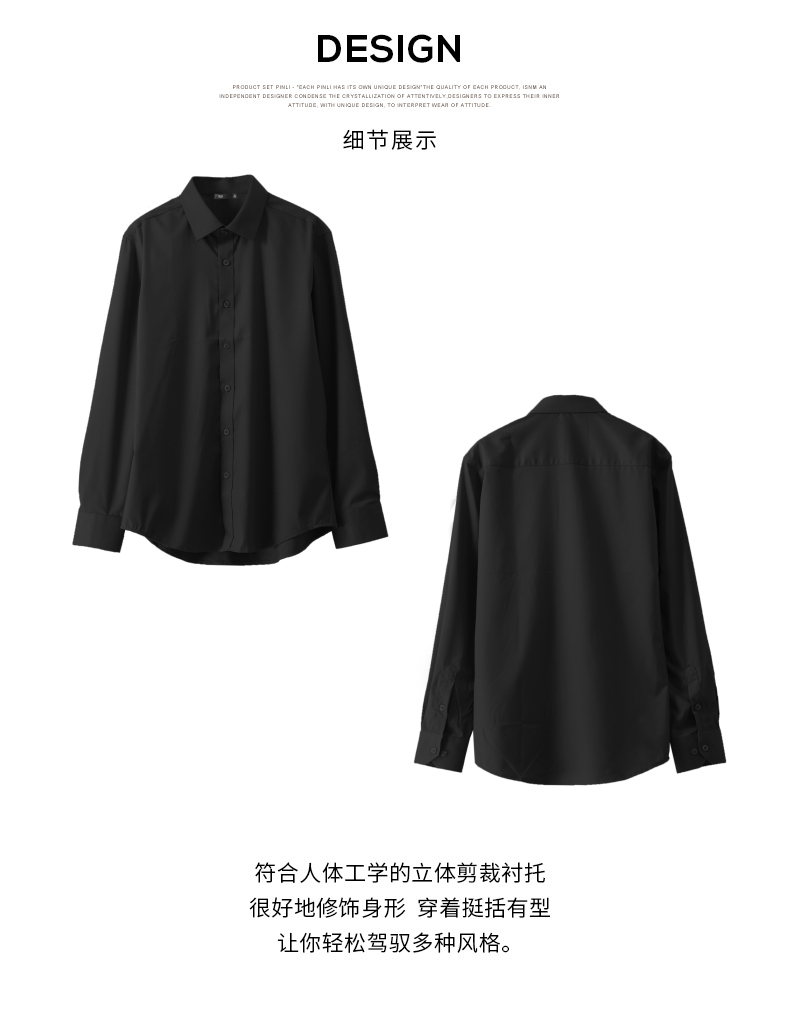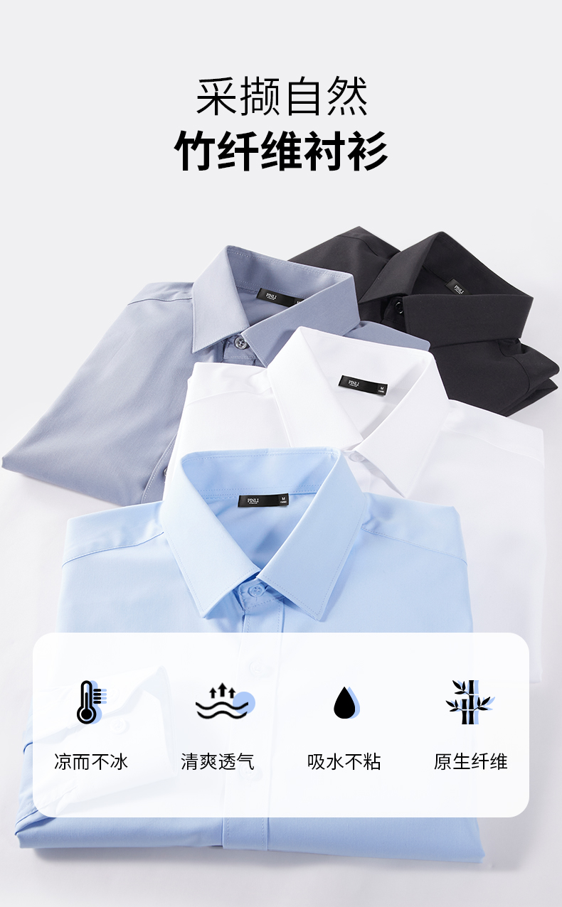 PINLI品立2025秋季新品男士弹力商务衬衣竹纤维打底长袖休闲衬衫GD253113036