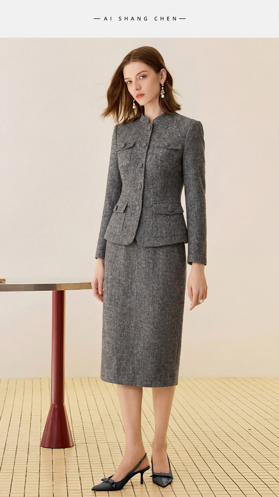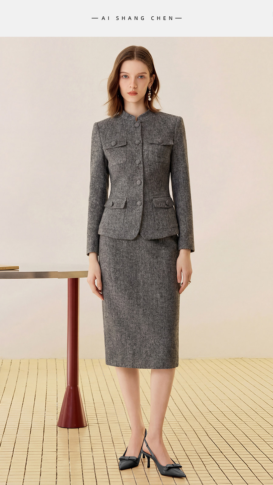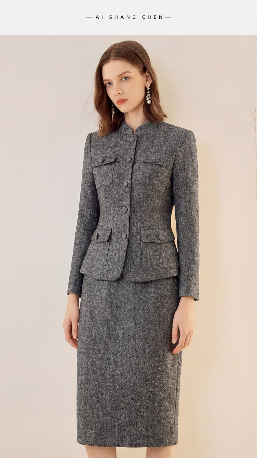 艾尚臣正肩立领酒店制服西装外套半身裙两件套女职业装工作服