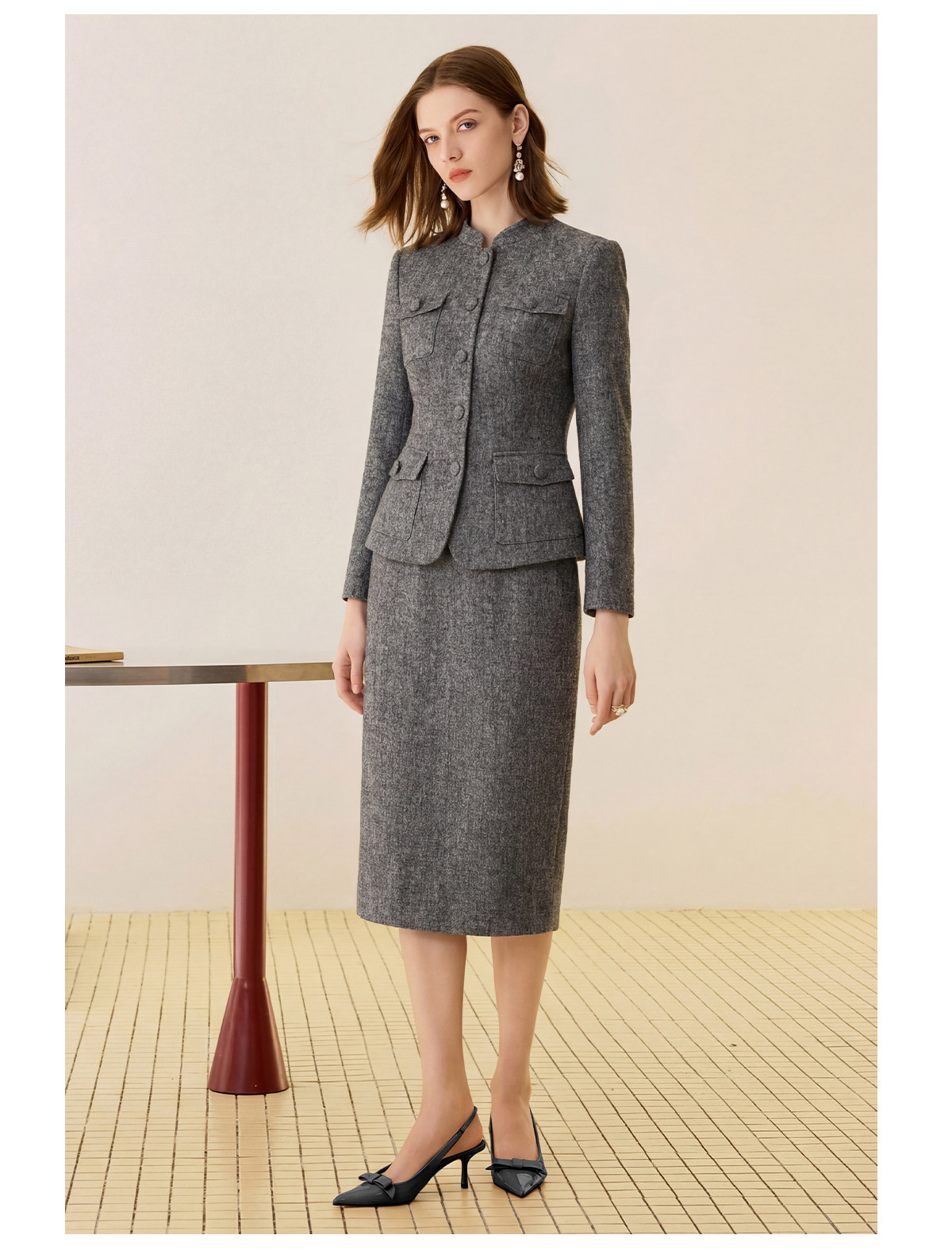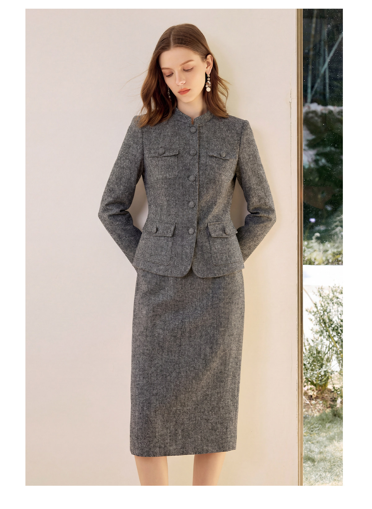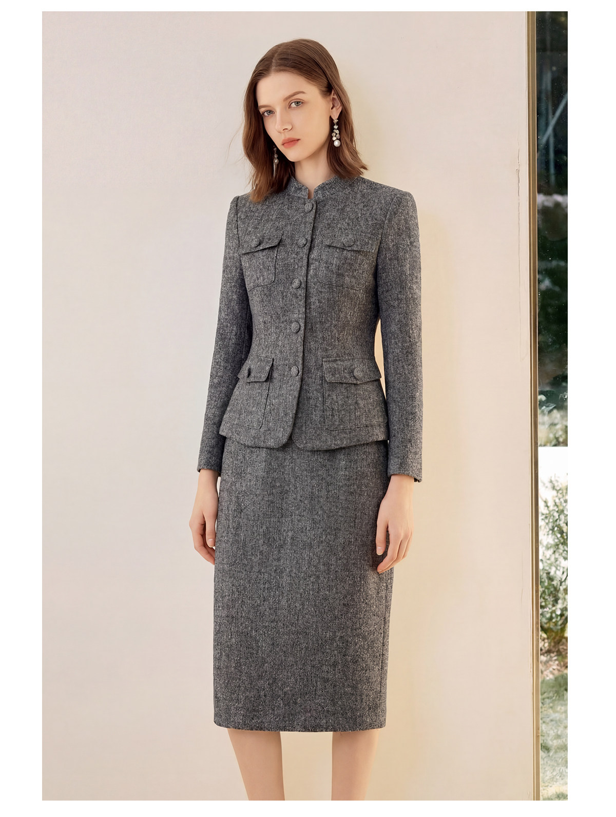 艾尚臣正肩立领酒店制服西装外套半身裙两件套女职业装工作服