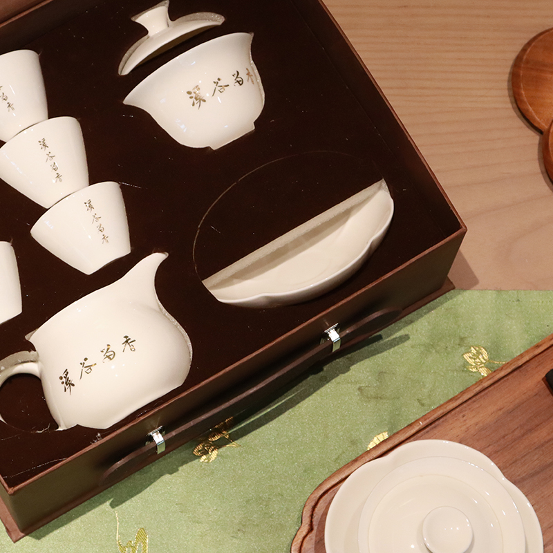 溪谷留香·茶具 白瓷盖碗一套+公道杯+主人杯*6