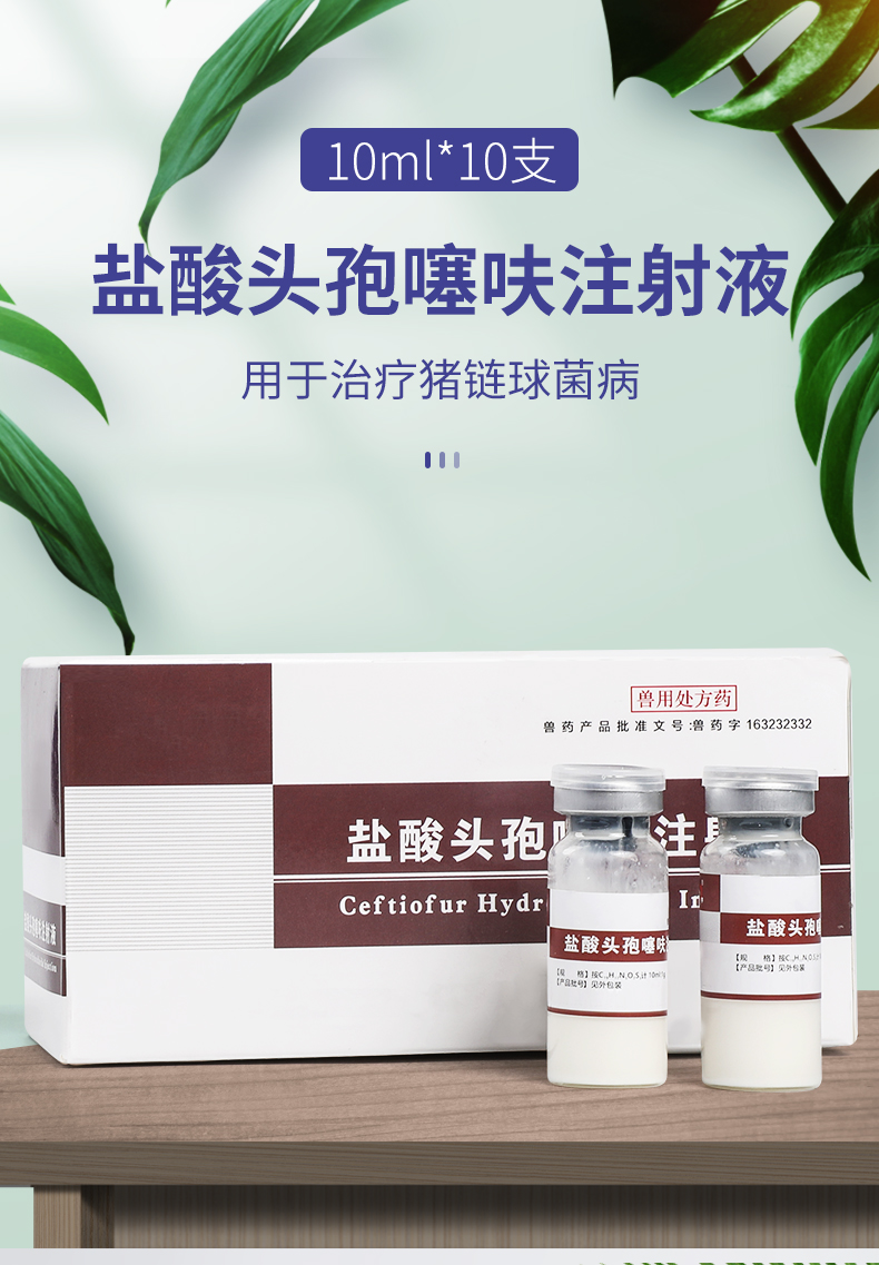 华畜兽药 盐酸头孢噻呋注射液10ml*10支 可维持有效血药浓度达5天以上 广谱杀菌
