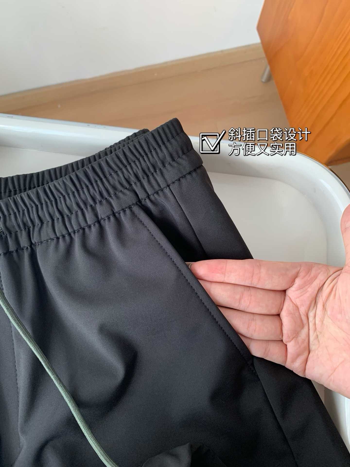 斜插口袋+一体式松紧可调节腰围,实用实穿收纳便捷更安全!