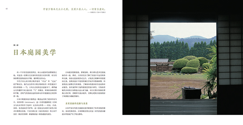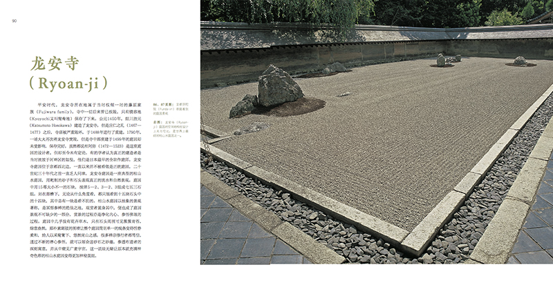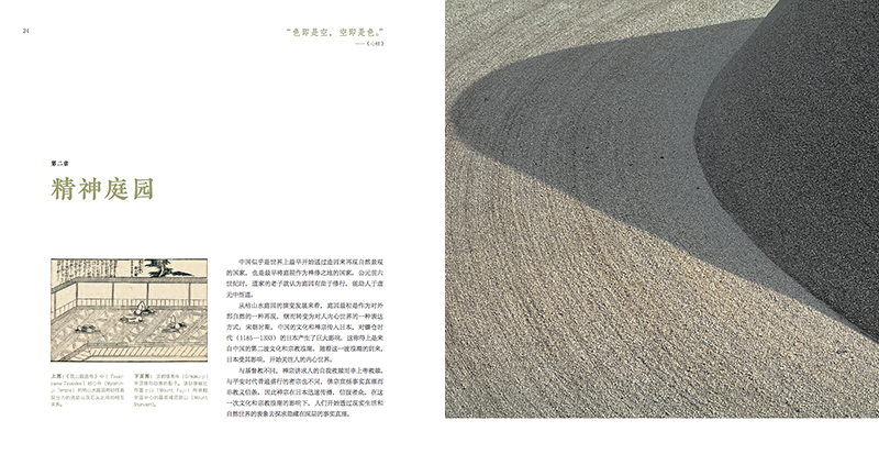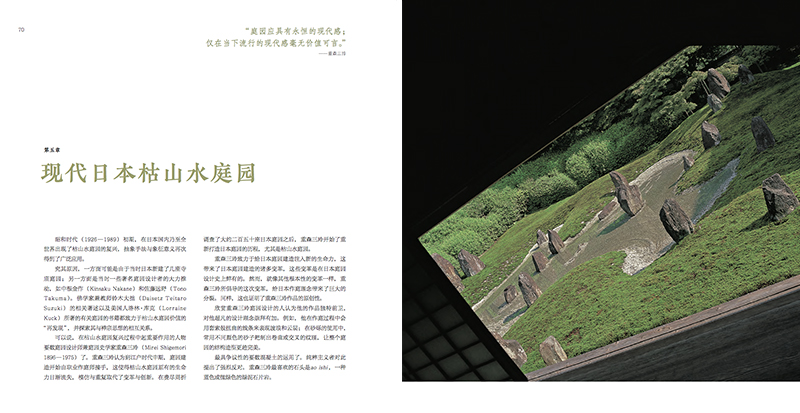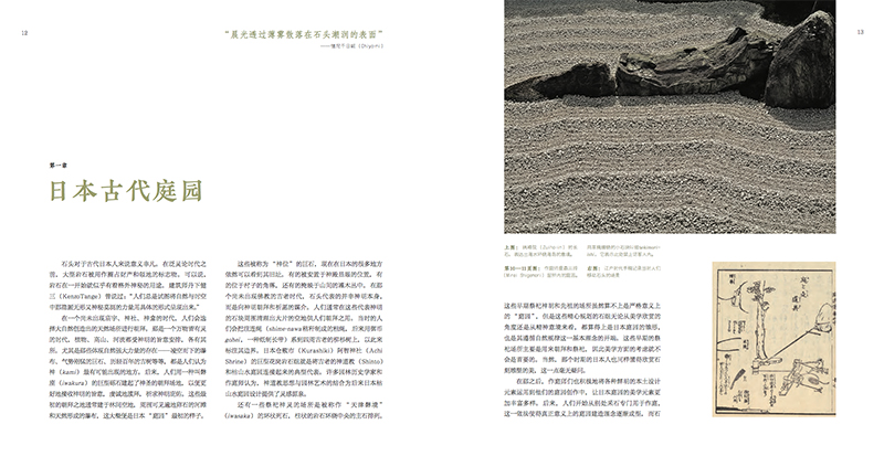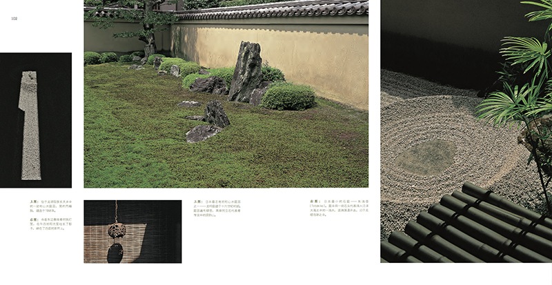 欣赏这样的枯山水园林,就如同在凝望一片通往禅悟之境的虚空。透过这些砂石,绿意盎然的未来便在静修参悟中从看似枯寂的过往中萌生,而这正是本书的精华所在,即“枯山水园林的源与意”。