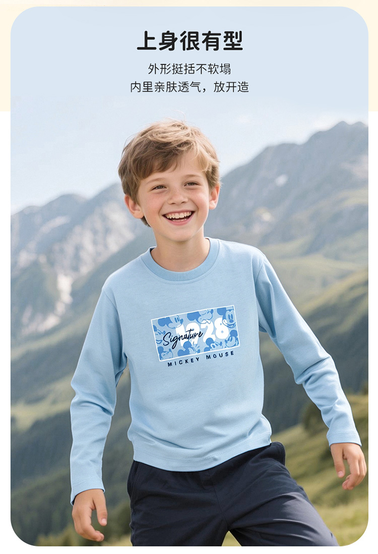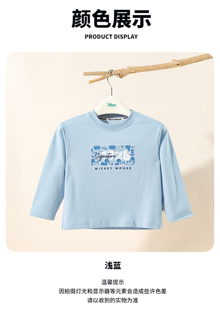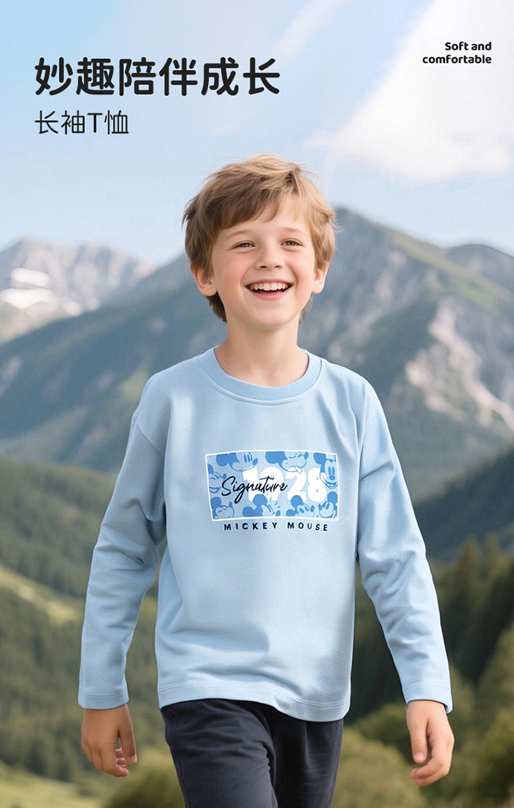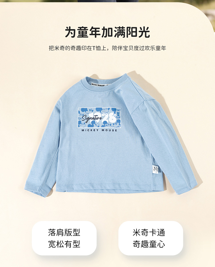 迪士尼2025春秋新款男童长袖T恤中大童纯棉运动跑步打底衫休闲上衣XD1ES047