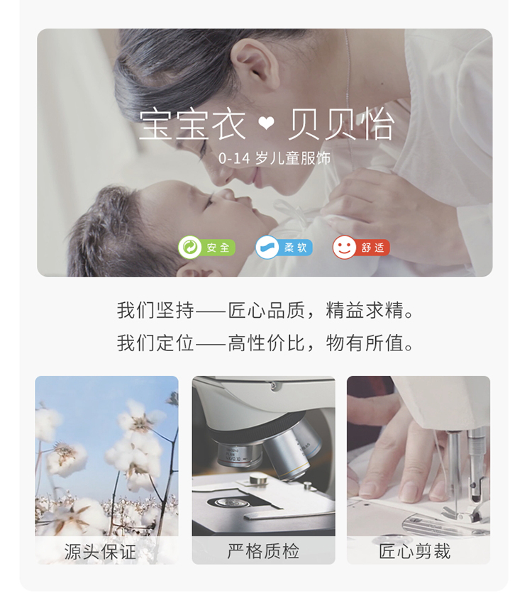 贝贝怡专注0-6岁婴幼儿服饰,坚持安全、柔软、舒适的产品理念,为千万中国家庭提供超高品质、安全可靠的婴幼儿服饰产品,妈妈放心,宝宝开心!
