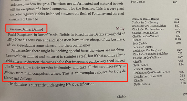 1、丹普酒庄:夏布利精品名庄,《醇鉴》评其酒为夏布利代表之一