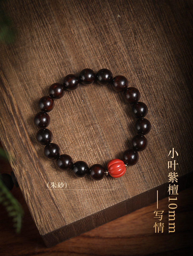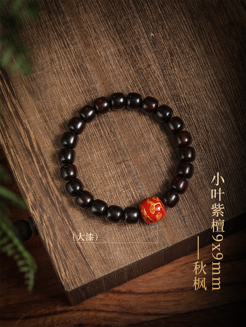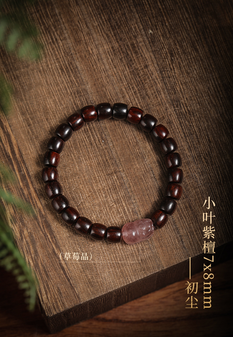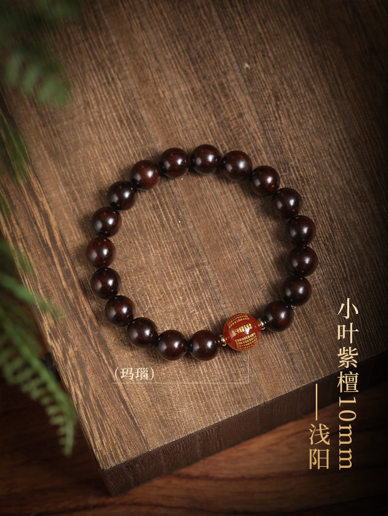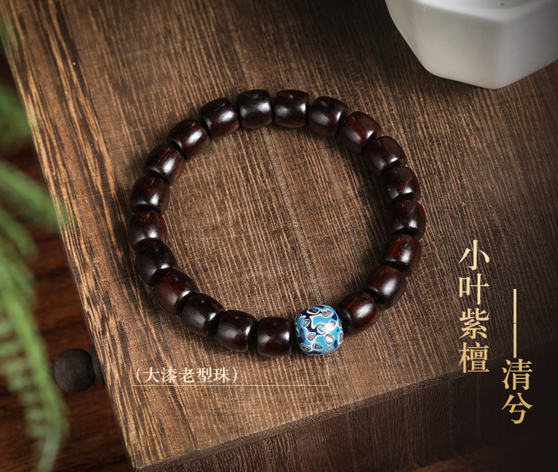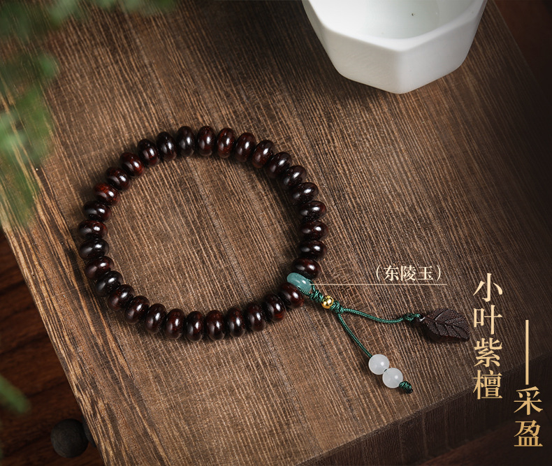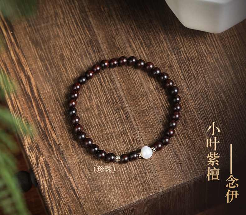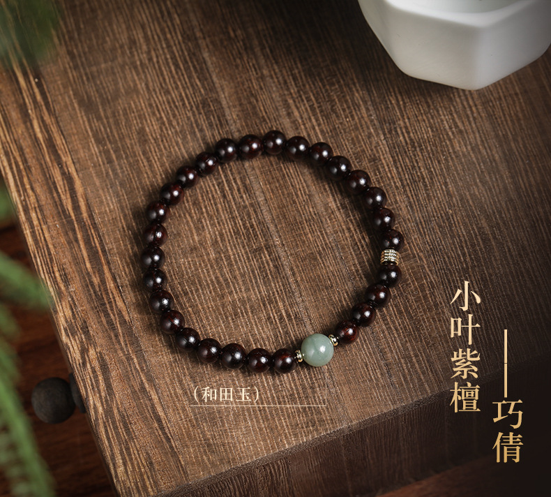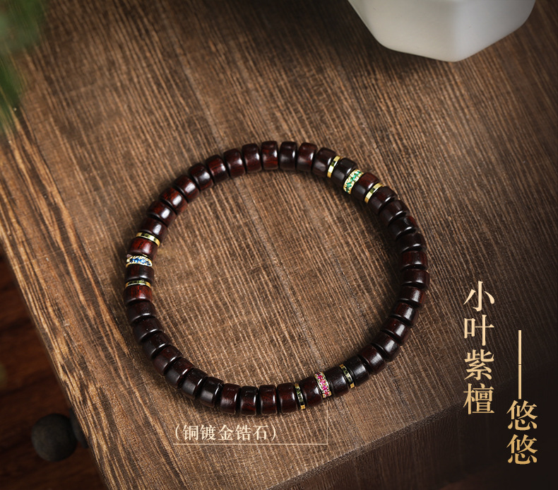 六鑫珠宝 印度小叶紫檀单圈佛珠diy手串 中国风文艺时尚
