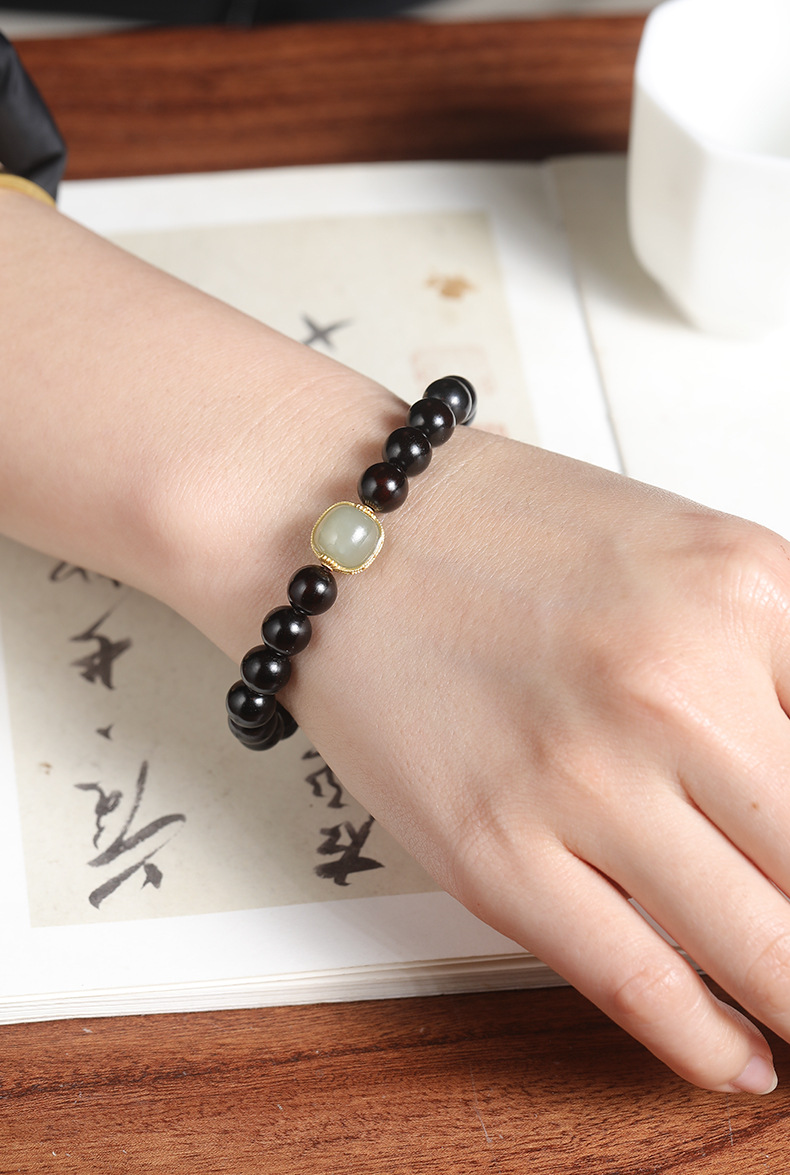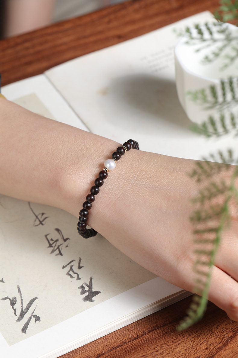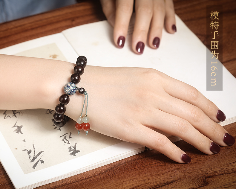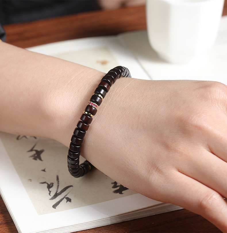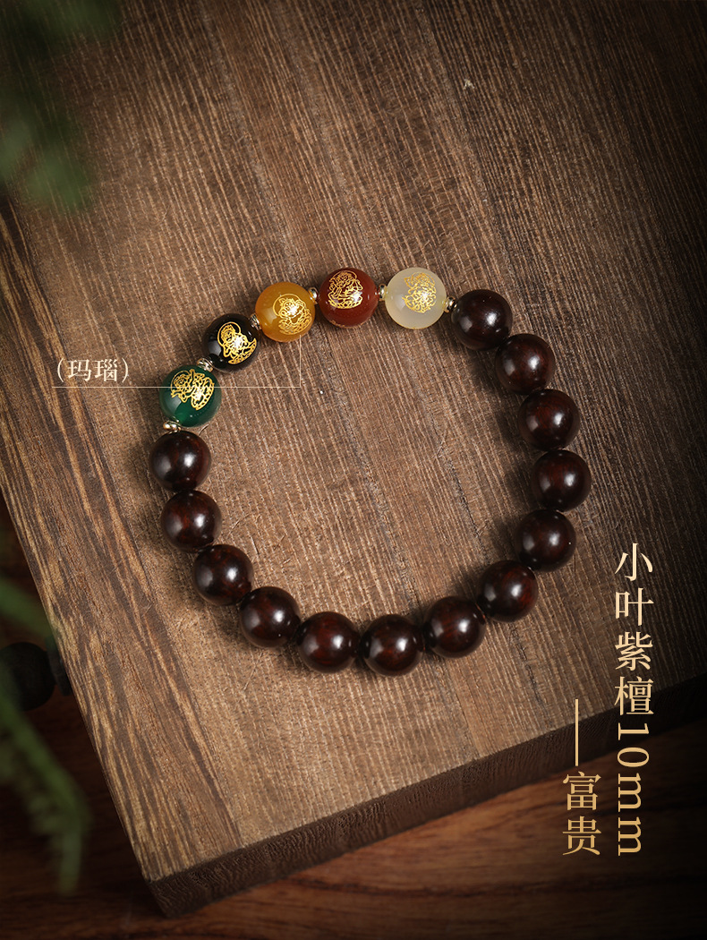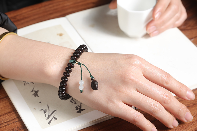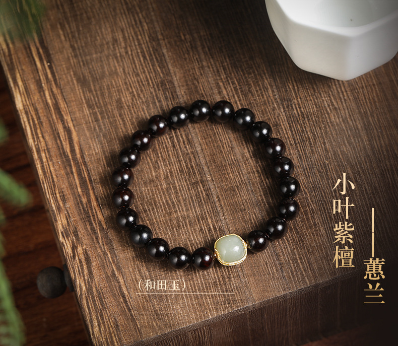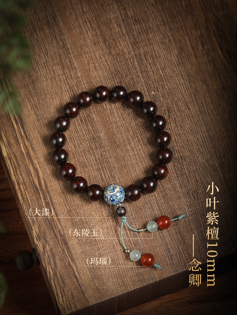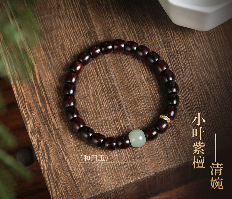六鑫珠宝 印度小叶紫檀单圈佛珠diy手串 中国风文艺时尚