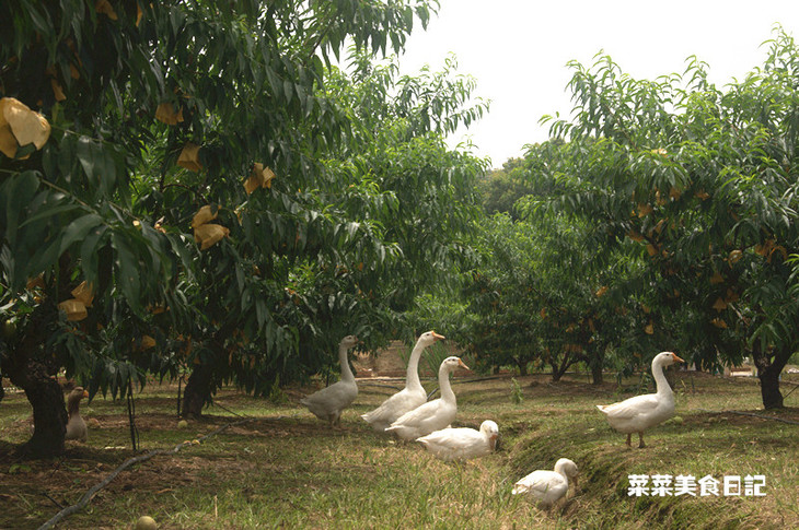 桃树林里的鸡鸭白鹅们,在我们面前闲庭信步。