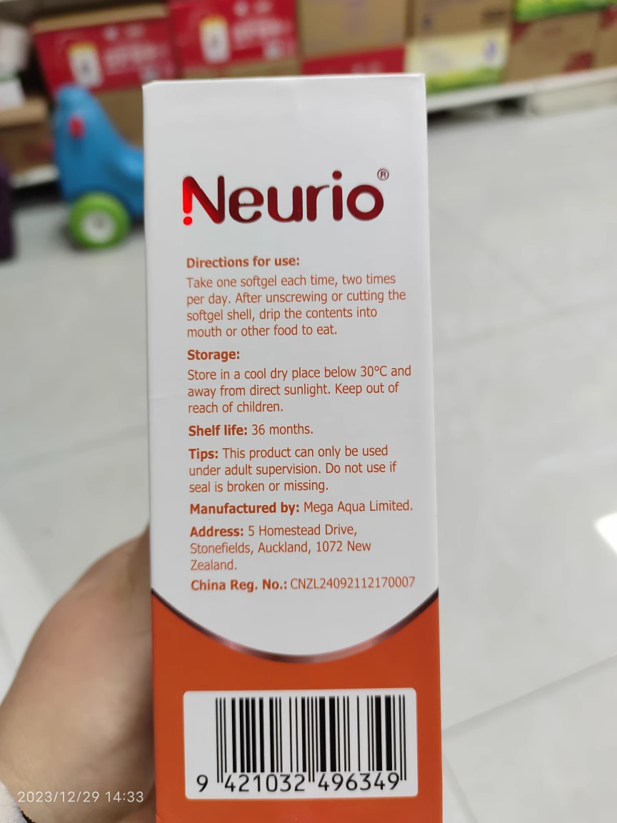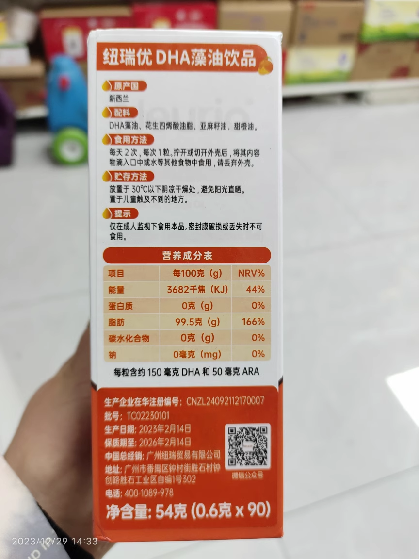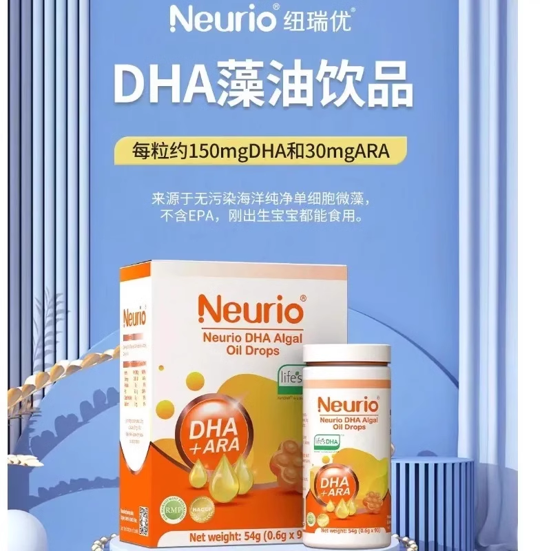 【一般贸易】新西兰进口纽瑞优DHA藻油饮品非鱼肝油宝宝dha藻油0.6g*90粒