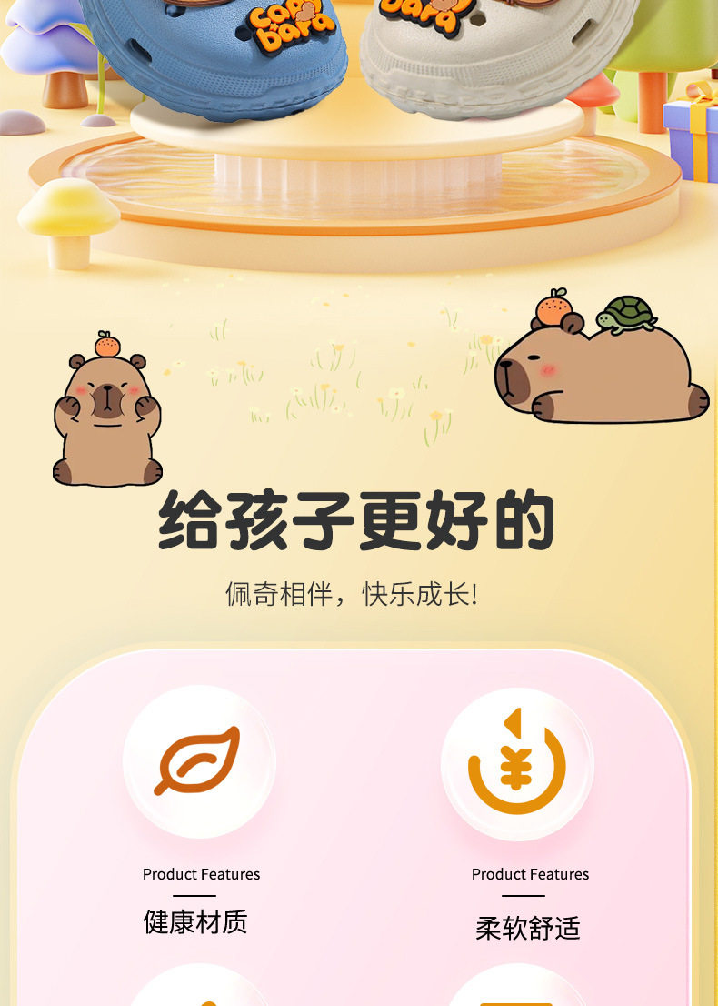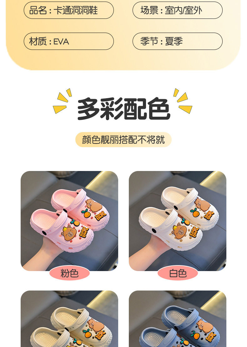卡皮巴拉儿童洞洞鞋夏男女童踩屎感防滑包头亲子中大童小孩凉拖鞋