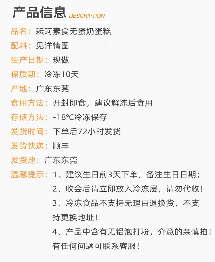 耘珂 新鲜冷冻 素食生日蛋糕 儿童蛋糕