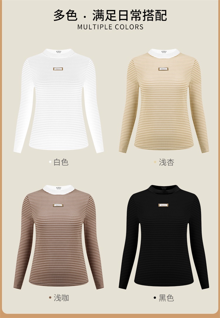 雅黛丽保暖上衣条纹打底衫可外穿修身显瘦秋冬季圆领长袖单件秋衣