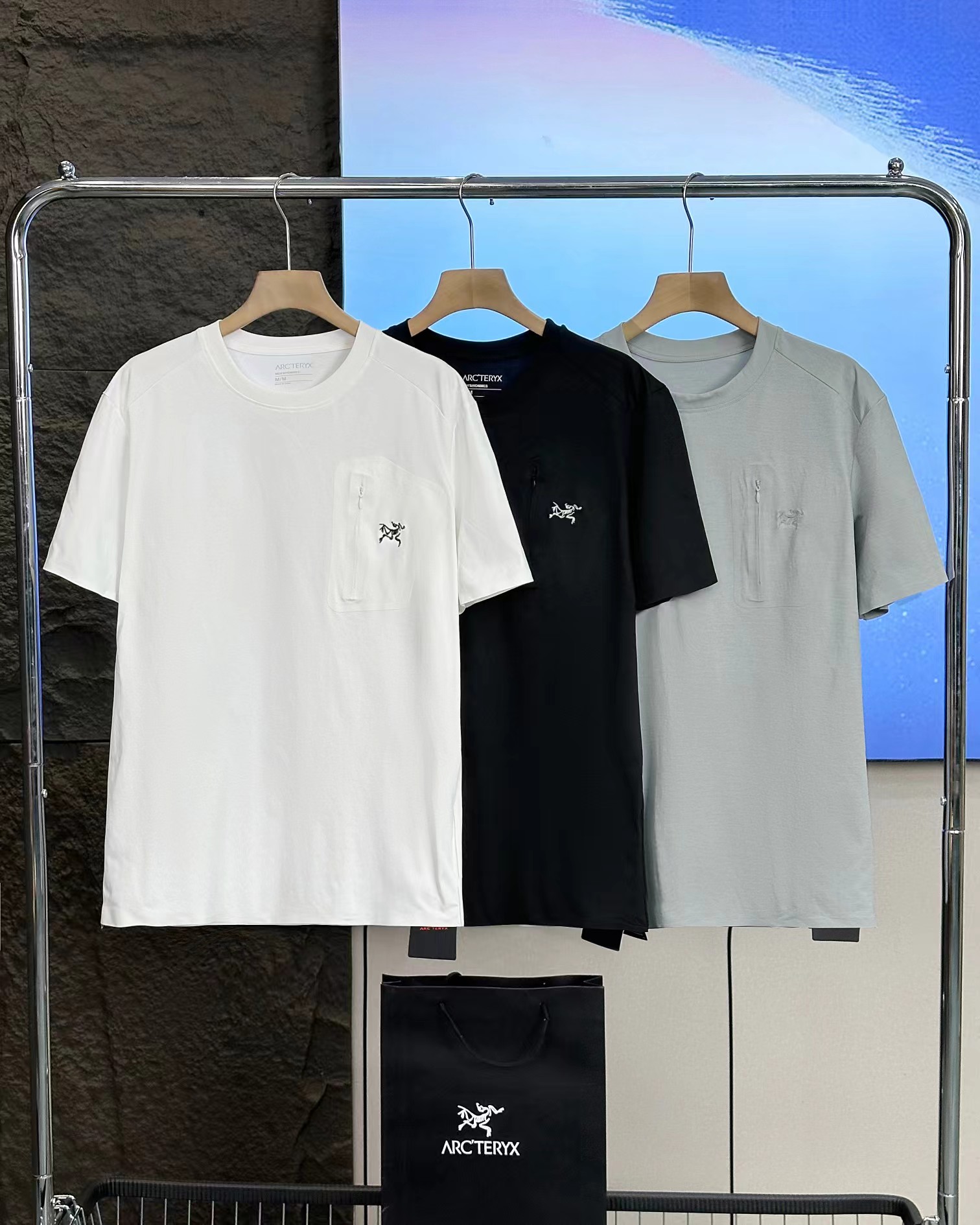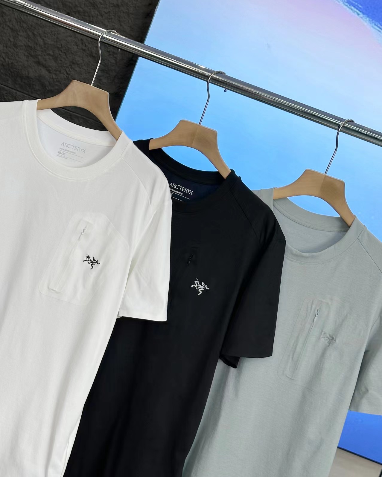 口袋刺绣夏季新款速干 功能款短袖T恤,瞬吸汗滴,极速扩散蒸发,并且单向导湿,清爽散热,防蚊防晒,清香+防蚊+防晒+吸湿+舒爽+抗皱,自带苹果香可高达水洗50次,款式工艺,堪称一绝, 一眼过去就感觉很贵很糕级,款式简单中的点睛之笔就是胸口处的压胶拉链口袋,以及口袋上的高密度刺绣 这种小logo万针刺绣才是这件衣服简约奢华的点缀!