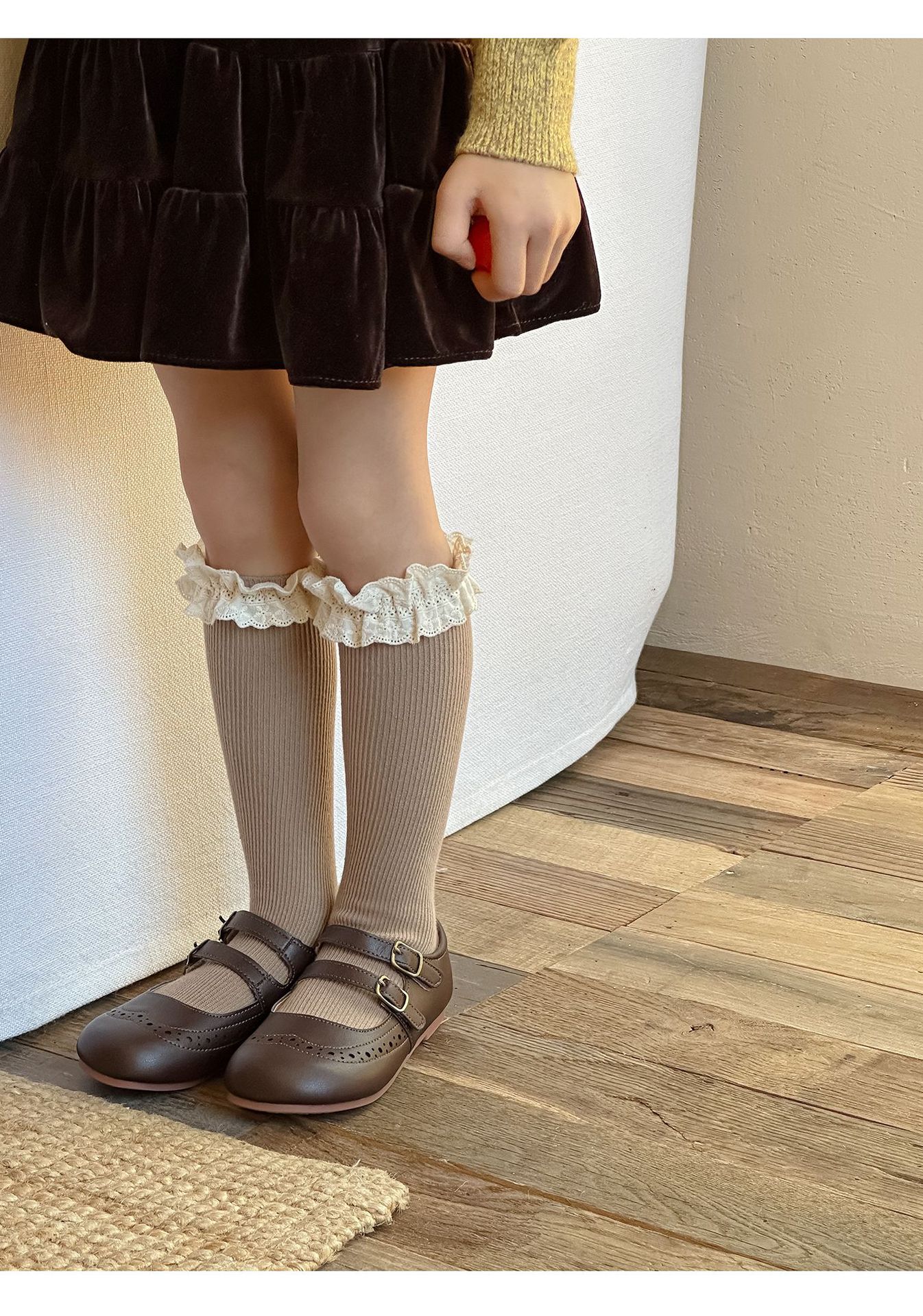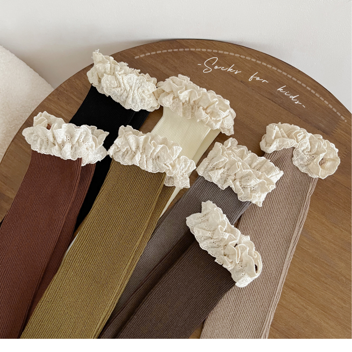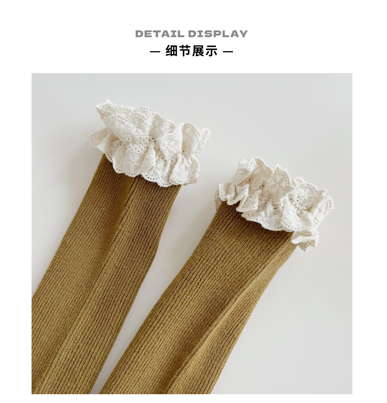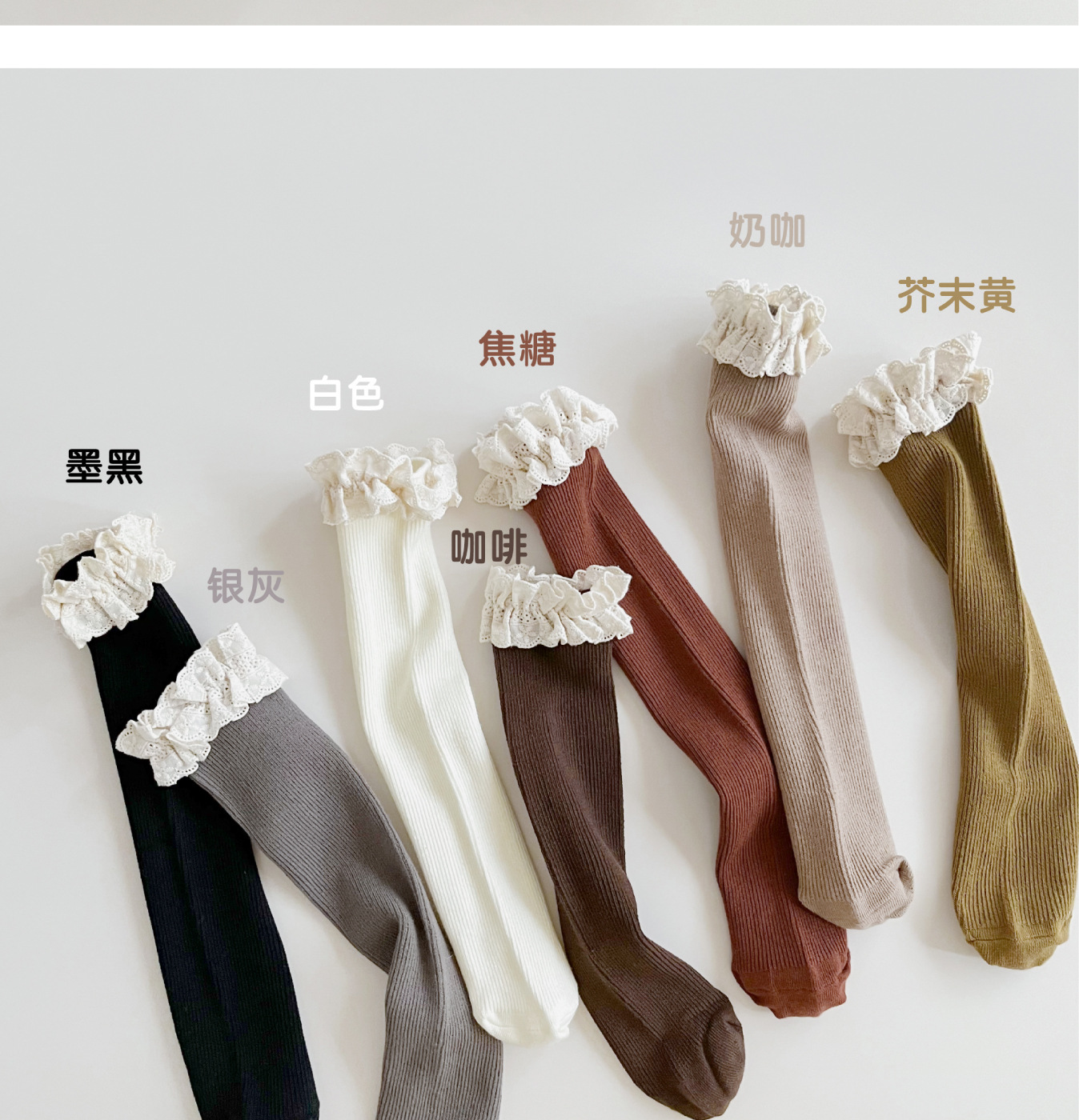 【精致的蕾丝花边设计,展现公主风范,韩国ins风格,萌趣又时尚】女童袜子春秋纯色堆堆袜 儿童中筒袜韩ins公主蕾丝花边宝宝长筒袜-QQ
